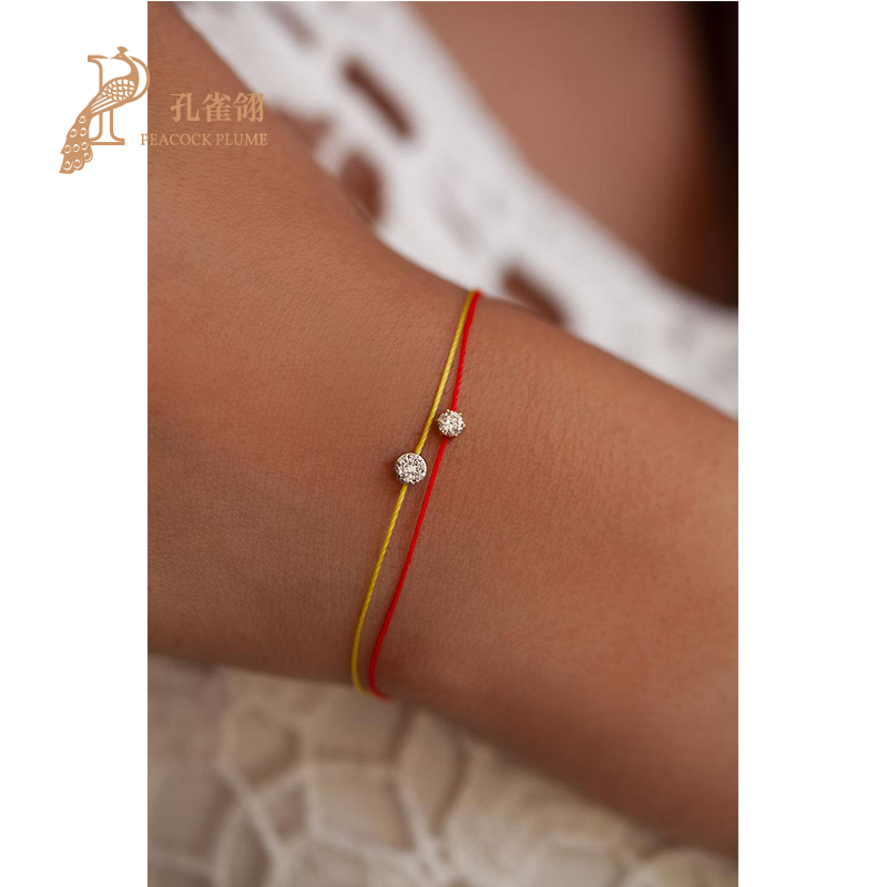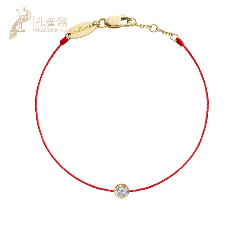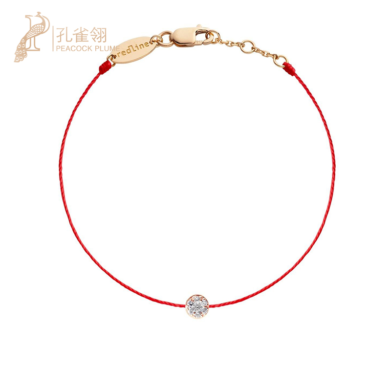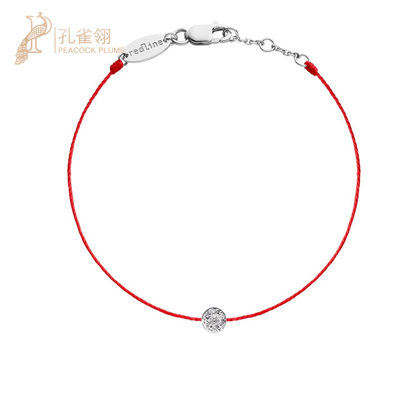 情人节redline红绳女士Samba 0.05克拉圆形钻石白金绳制手链