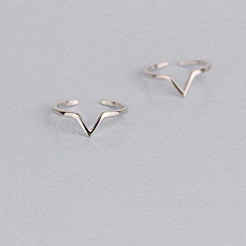 简约素戒925纯银饰品几何大V型指环女款开口戒指冷淡风情侣礼物潮
