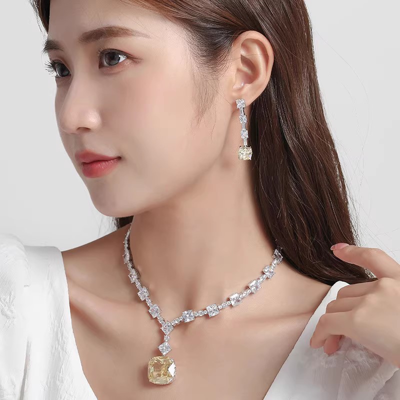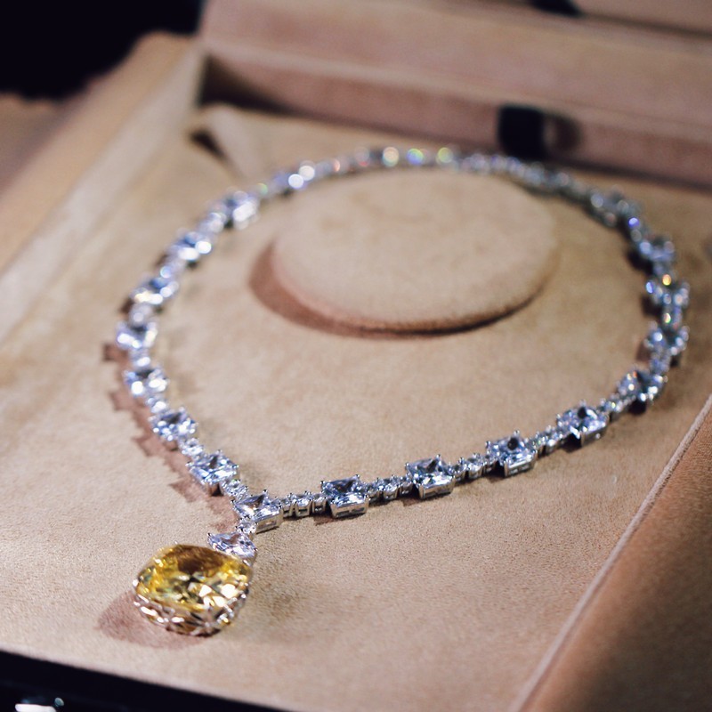欧美奢华高级感大气黄钻项链新娘主婚纱晚礼服晚宴配饰轻奢小众女