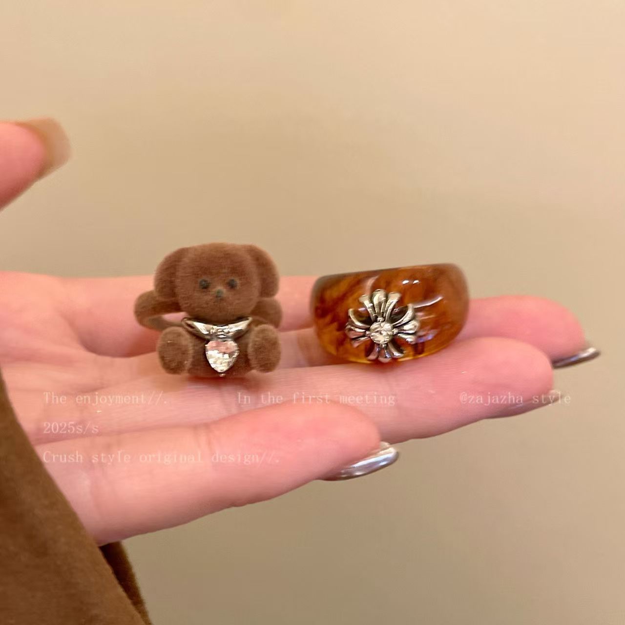 秋日氛围感!小狗锆石戒指女款美拉德复古可爱食指戒秋冬小众指环