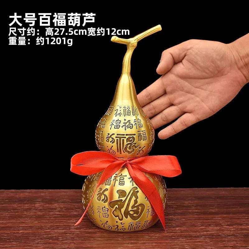 黄铜百福葫芦开盖空心开口福字大中小号工艺品摆件办公室桌面客厅