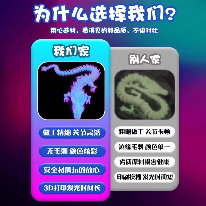 。夜光龙3d打印龙渐变水晶龙全关节可动彷真玩具男桌面创意摆件礼