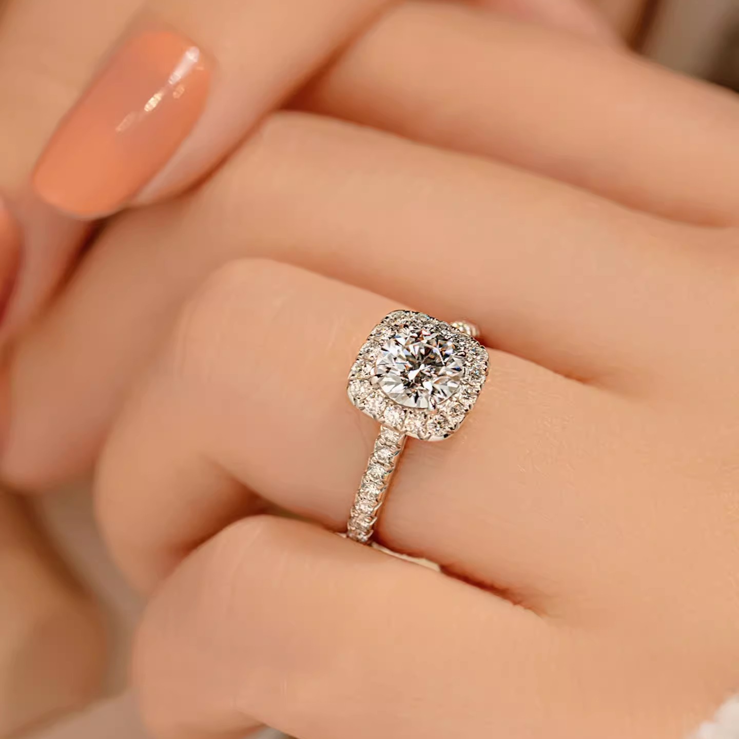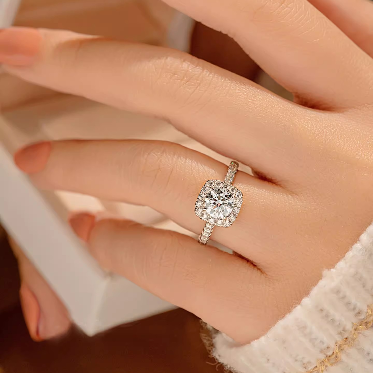 S925纯银莫桑石戒指满天星小方糖1克拉50分包镶女款经典四爪钻戒