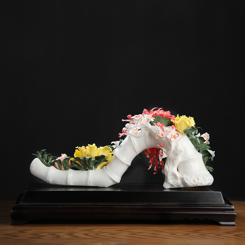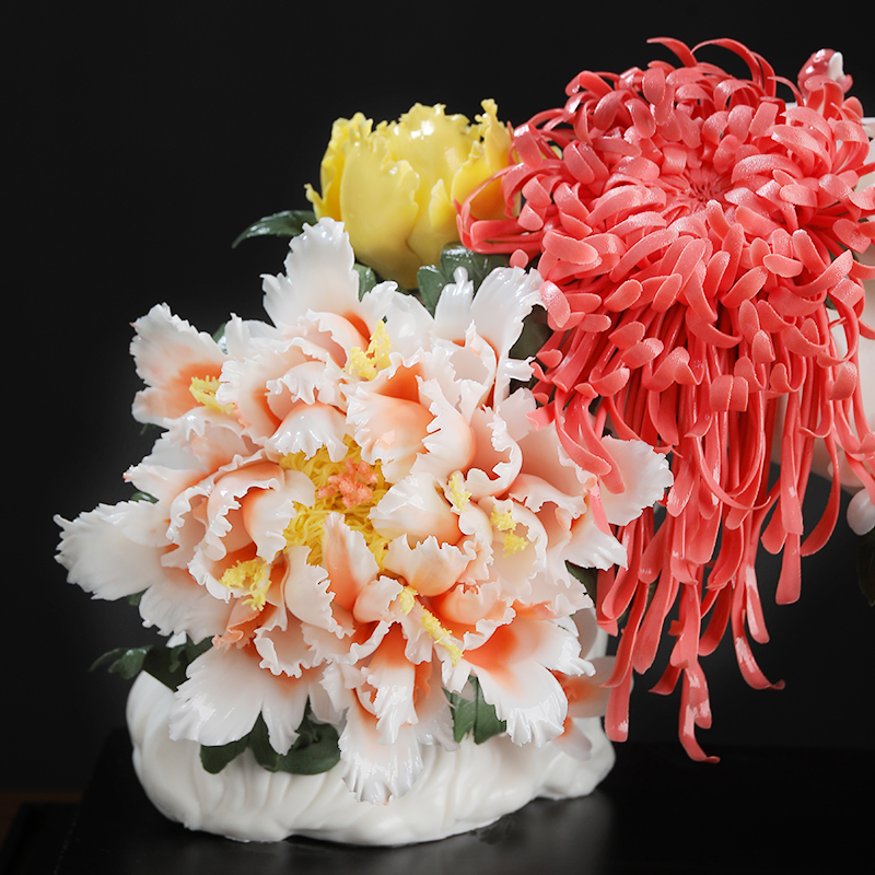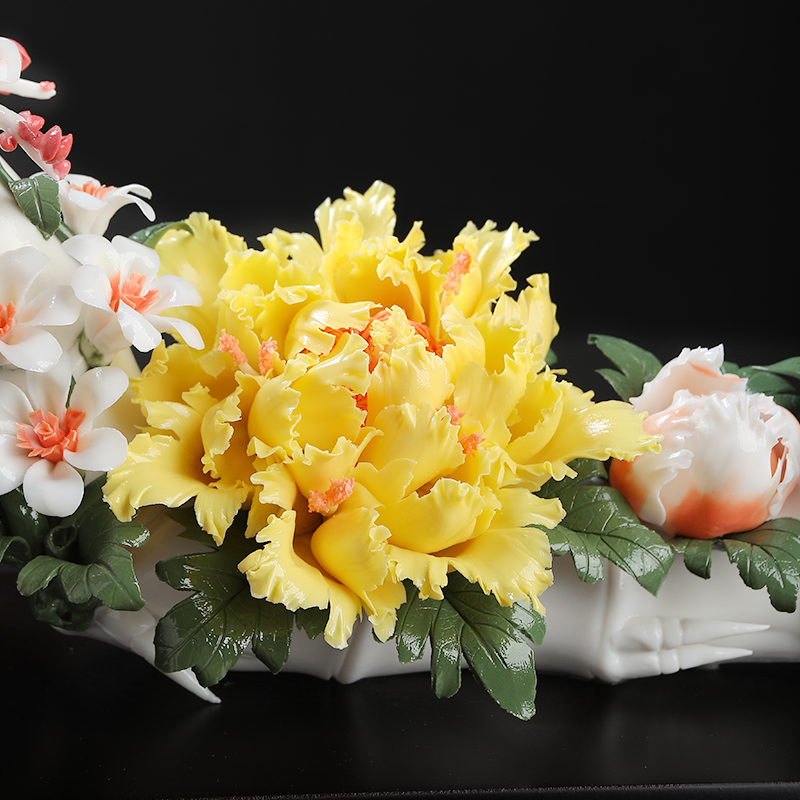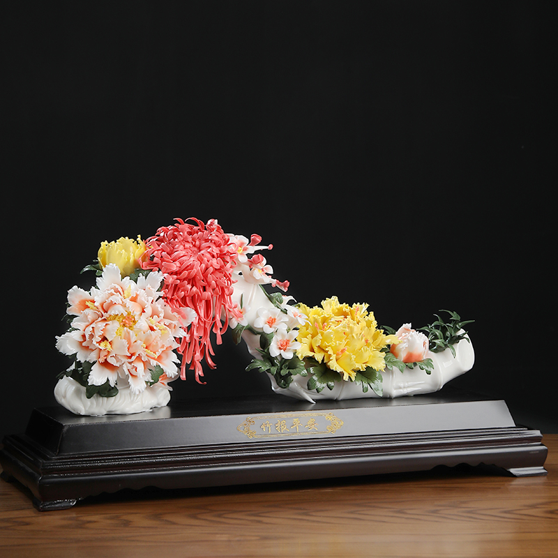 新中式手工陶瓷瓷花花摆件竹报平安客厅书房酒柜博古架艺术装饰品