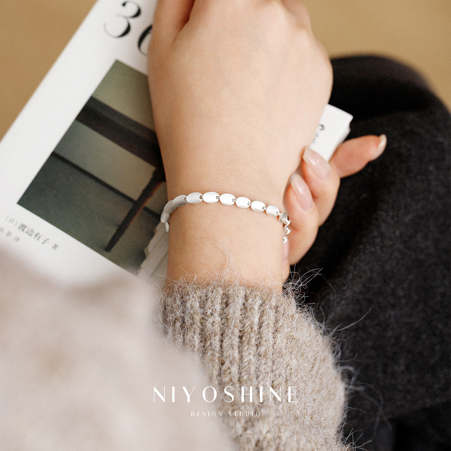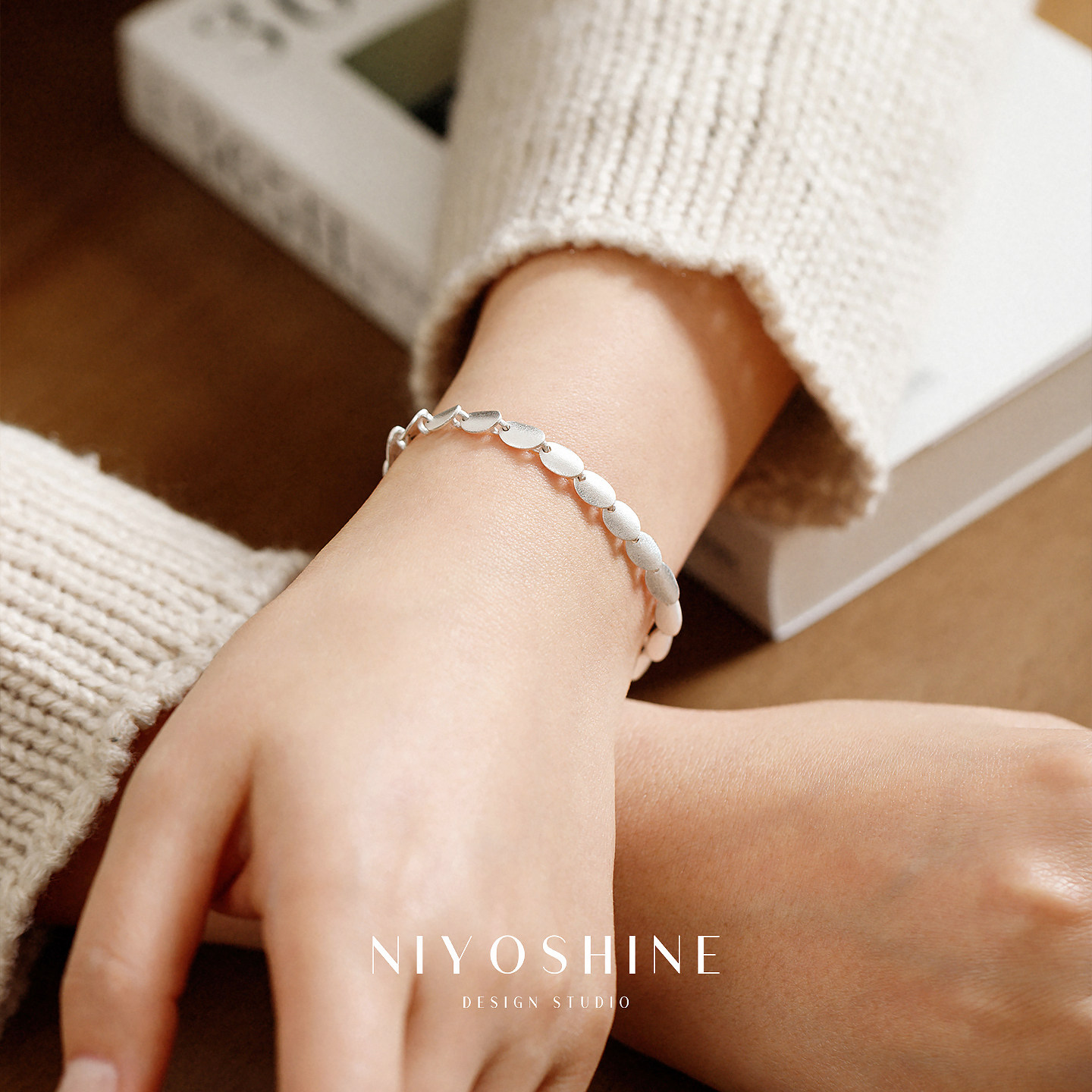 磨砂哑光鱼鳞手链女款小众设计精致简约高级感时尚手饰抽拉可调节