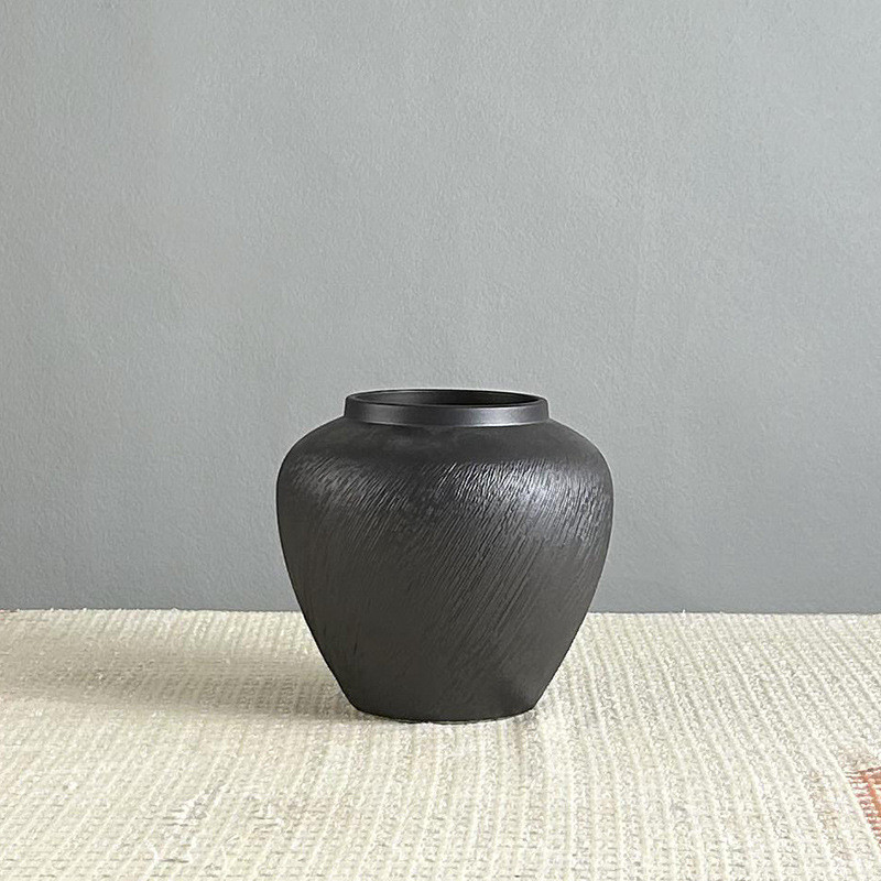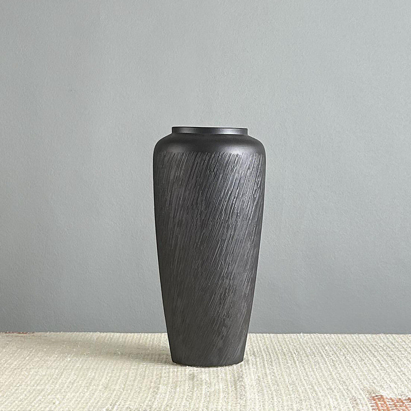 景德镇厂家陶瓷黑色陶瓷工艺品中式摆件花瓶软装样板房插干花花器