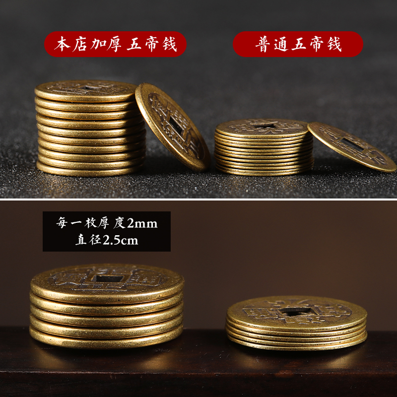 纯黄铜五帝钱挂件压门槛门对门六帝钱铜钱厕所卧室门窗户朱砂挂饰
