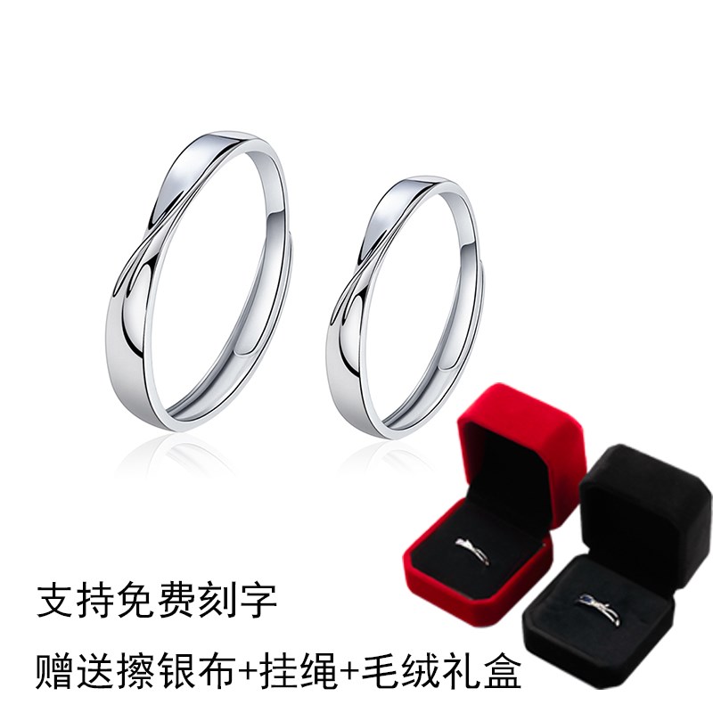 莫比乌斯999足银情侣戒指一对素圈E男女异地恋学生开口对戒可刻字