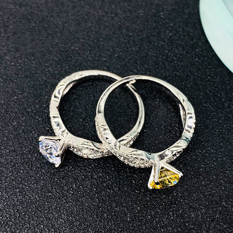 PT950铂金群镶进口莫桑石气质1克拉黄钻波浪戒指纯银交叉百搭指环