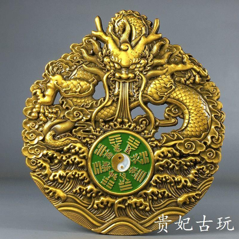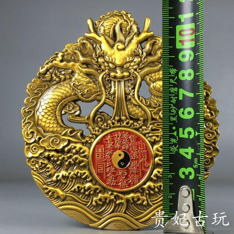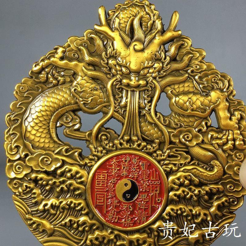 珍藏纯铜双面浮雕龙腾四海山鬼八卦铜牌铜镜挂件镇宅纳福招财令牌