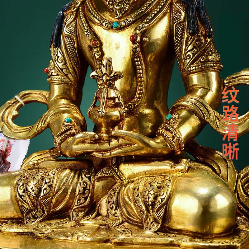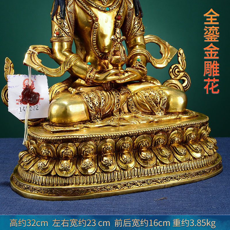 欧斯特 常寿佛铜像 西藏居家客厅摆件 尼泊尔手工全铜鎏金工艺品