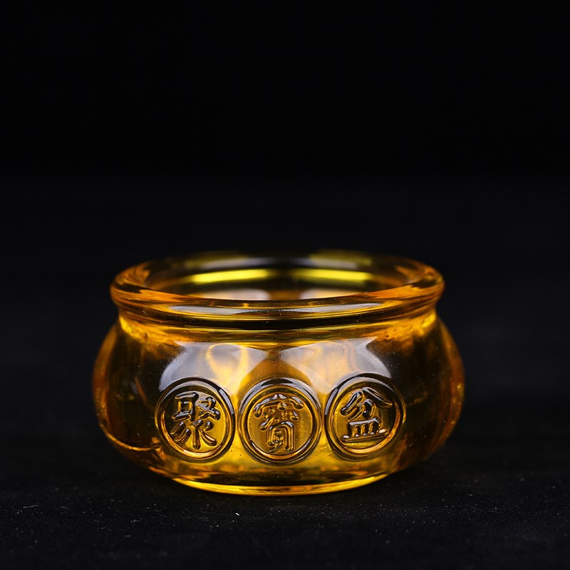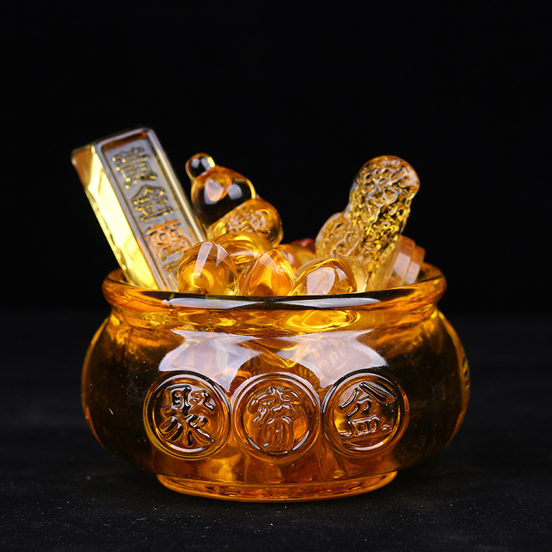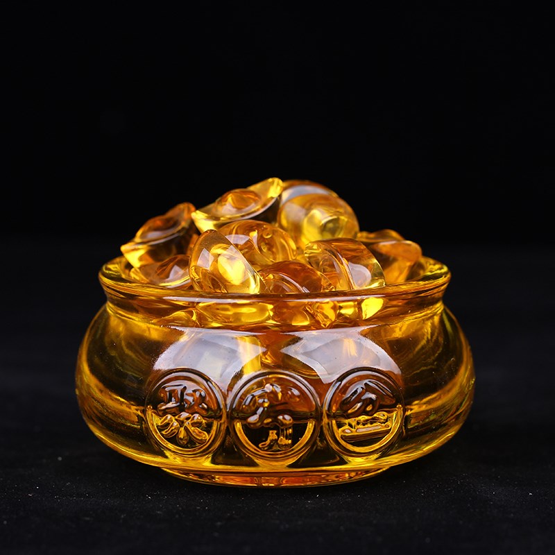 黄水晶聚宝盆摆件琉璃元宝金黄色招财家居桌面摆设乔迁礼品开业