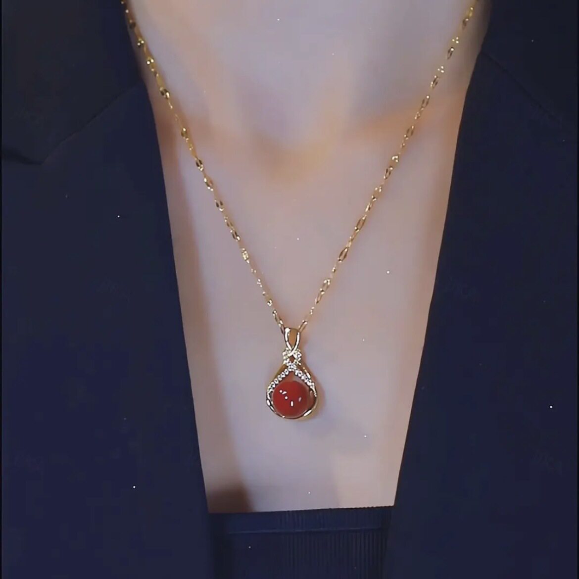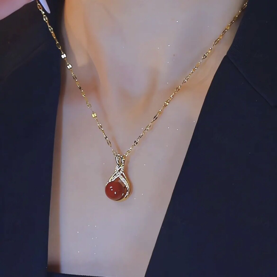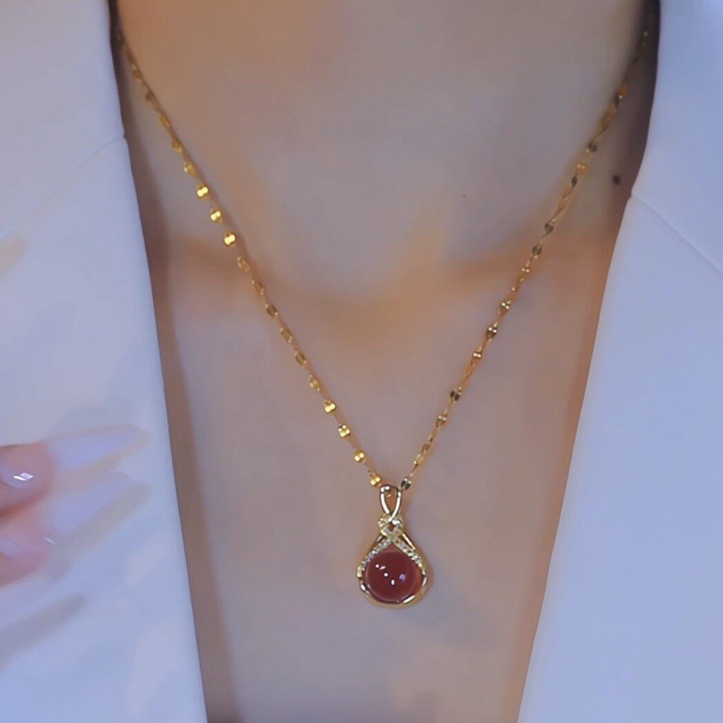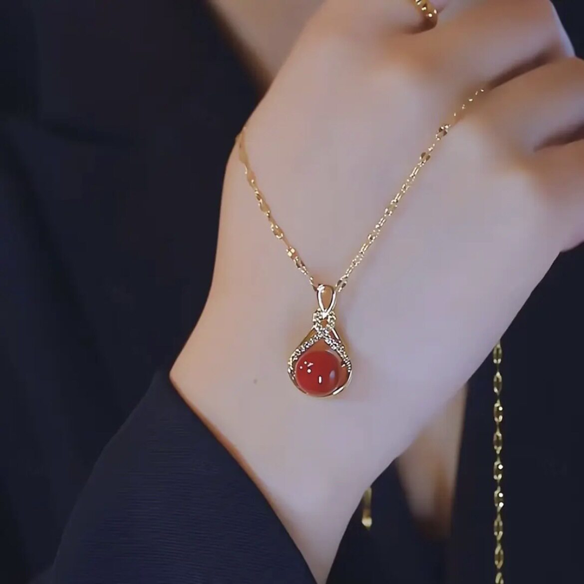 新中式红色天然玛瑙项链女2026新款爆款小福袋吊坠不掉色金锁骨链