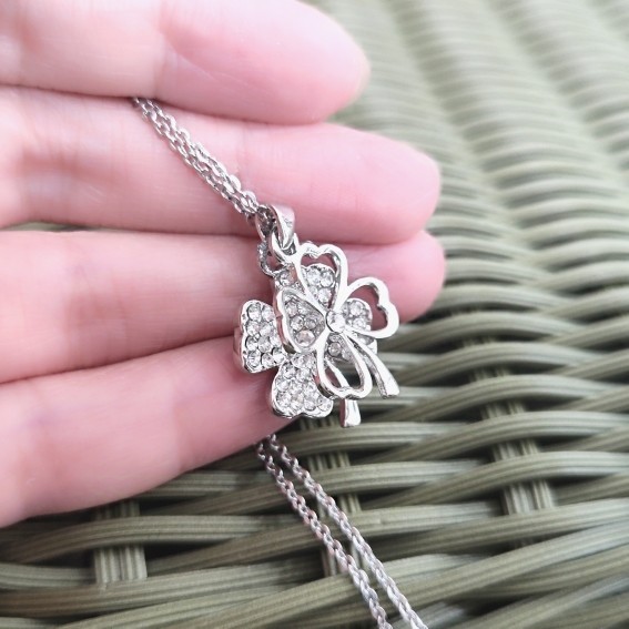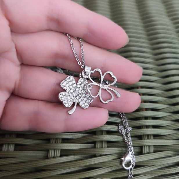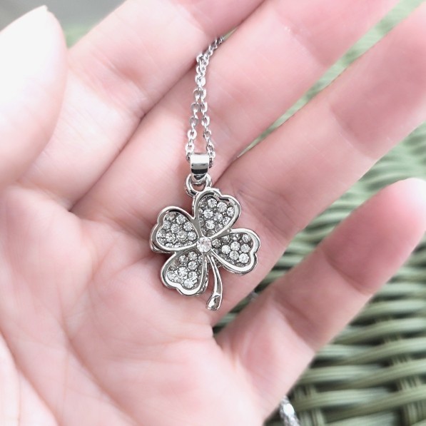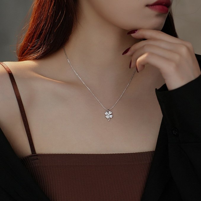 日韩版新款时尚百搭水钻幸运四叶草项链配饰女轻奢小众简约锁骨链