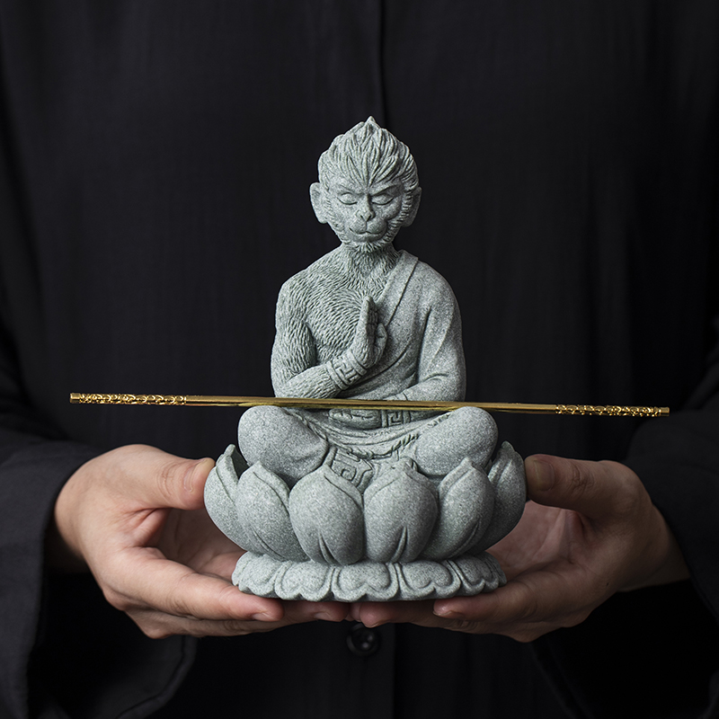 国风青砂石黑神话悟空金箍棒摆件齐天大圣家居办公室客厅桌面装饰