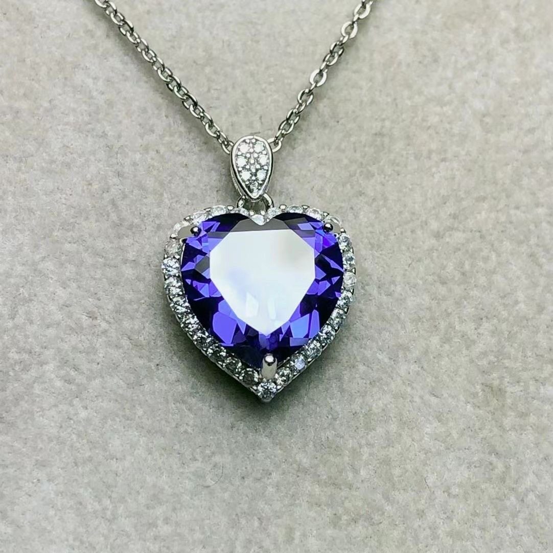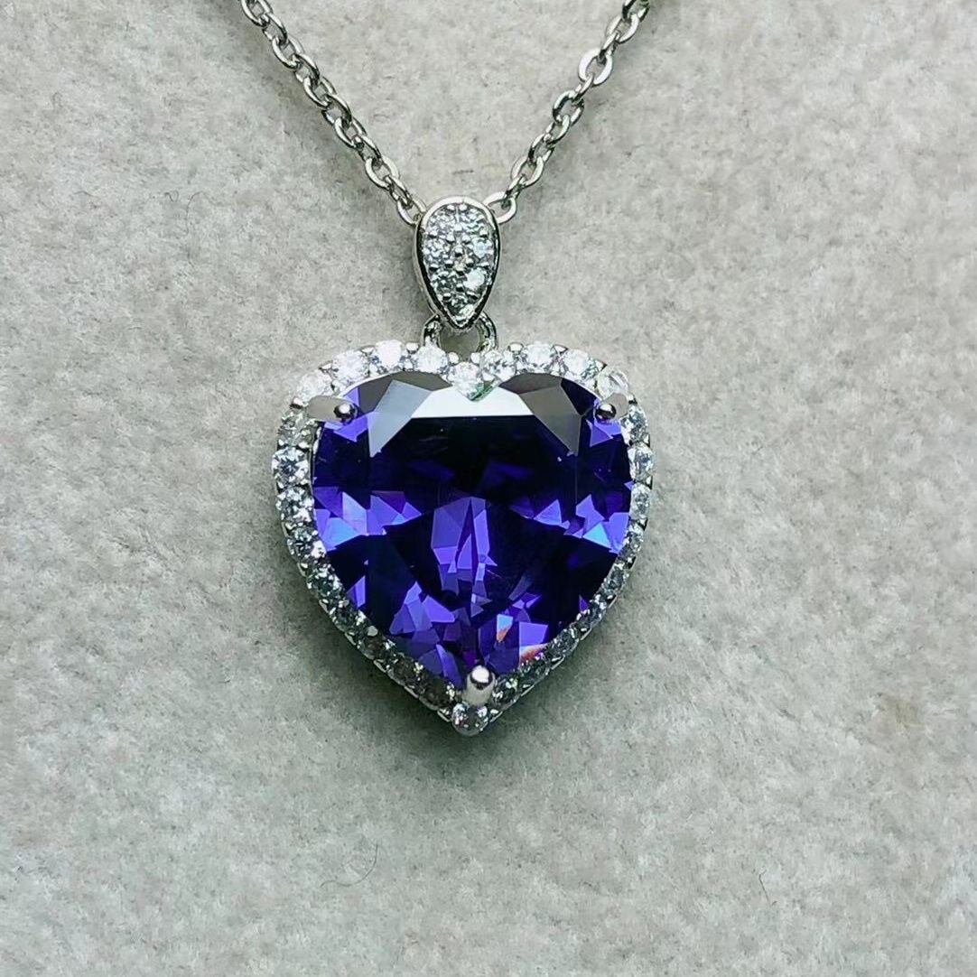 天然坦桑石吊坠淡蓝色高贵优雅全净体品质爆闪火彩925银精工镶嵌