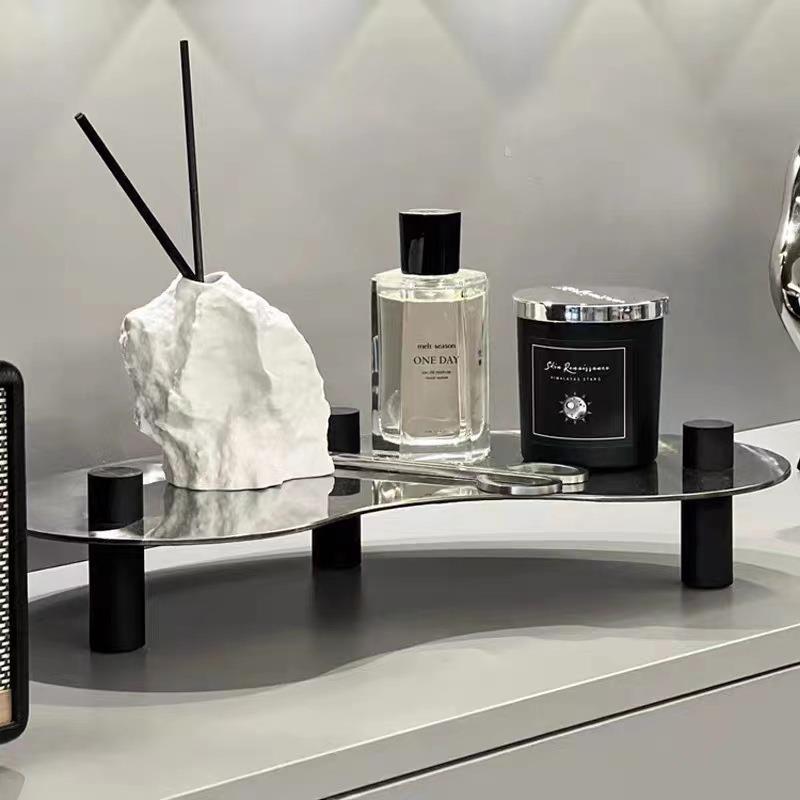 现代简约创意不锈钢托盘桌面软装饰品客厅茶几玄关办公室家居摆件
