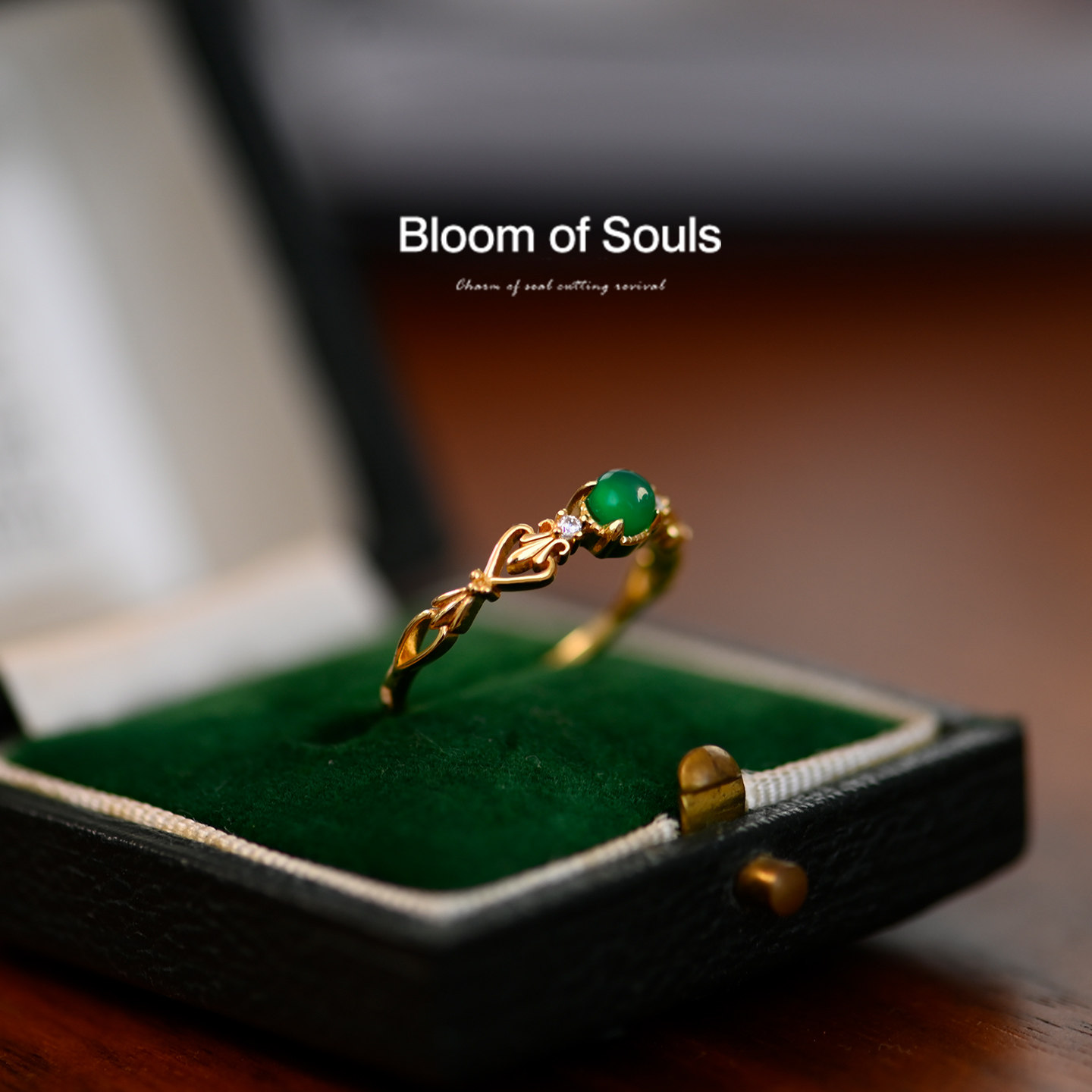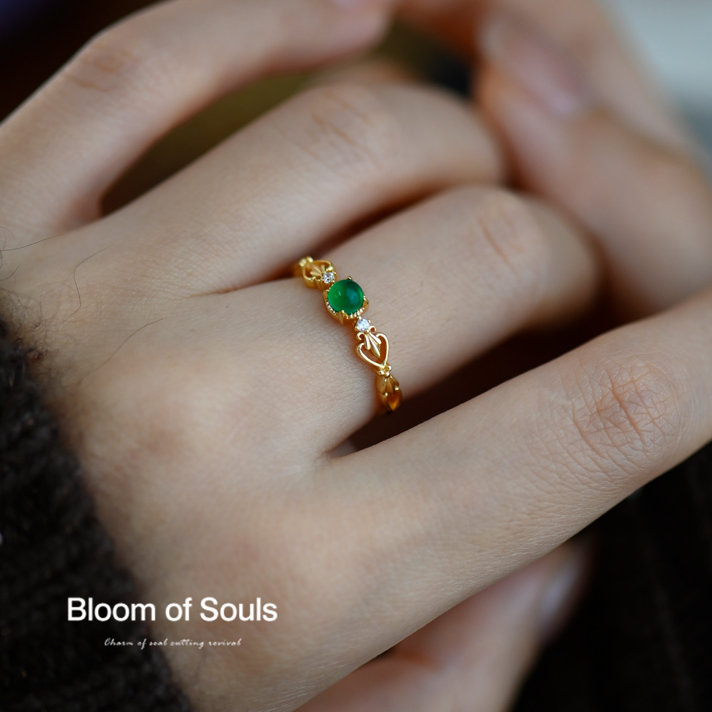 《点翠》原创设计纯银天然绿玛瑙法式复古戒指小众款指环高级感女