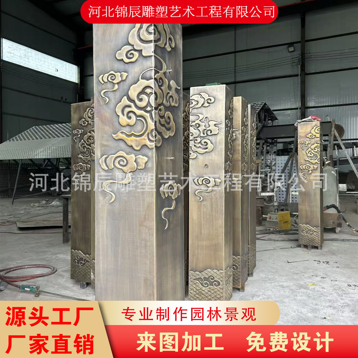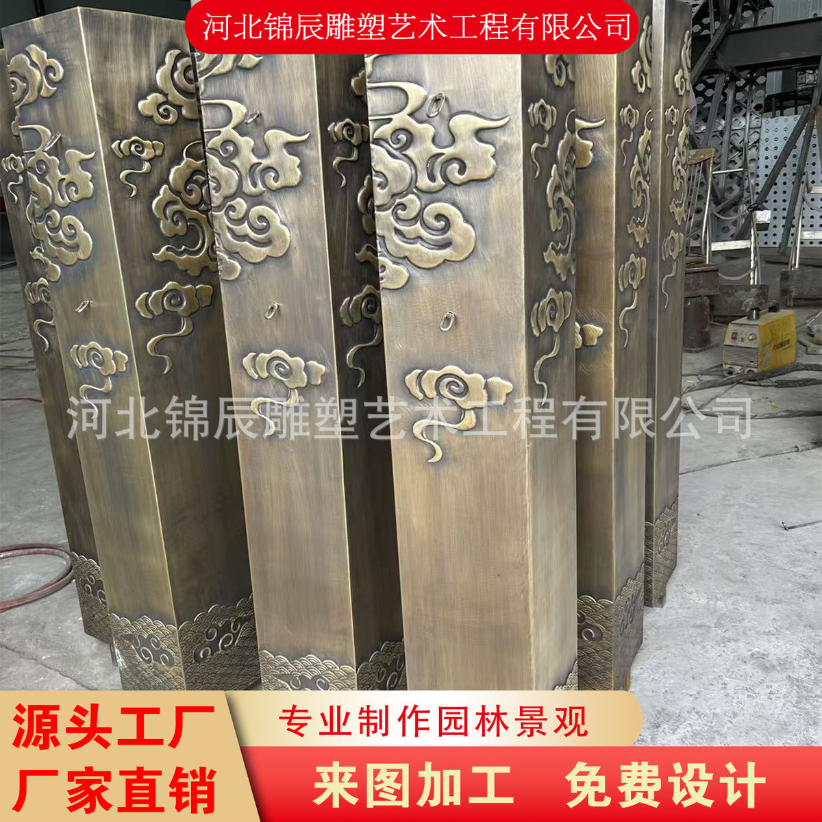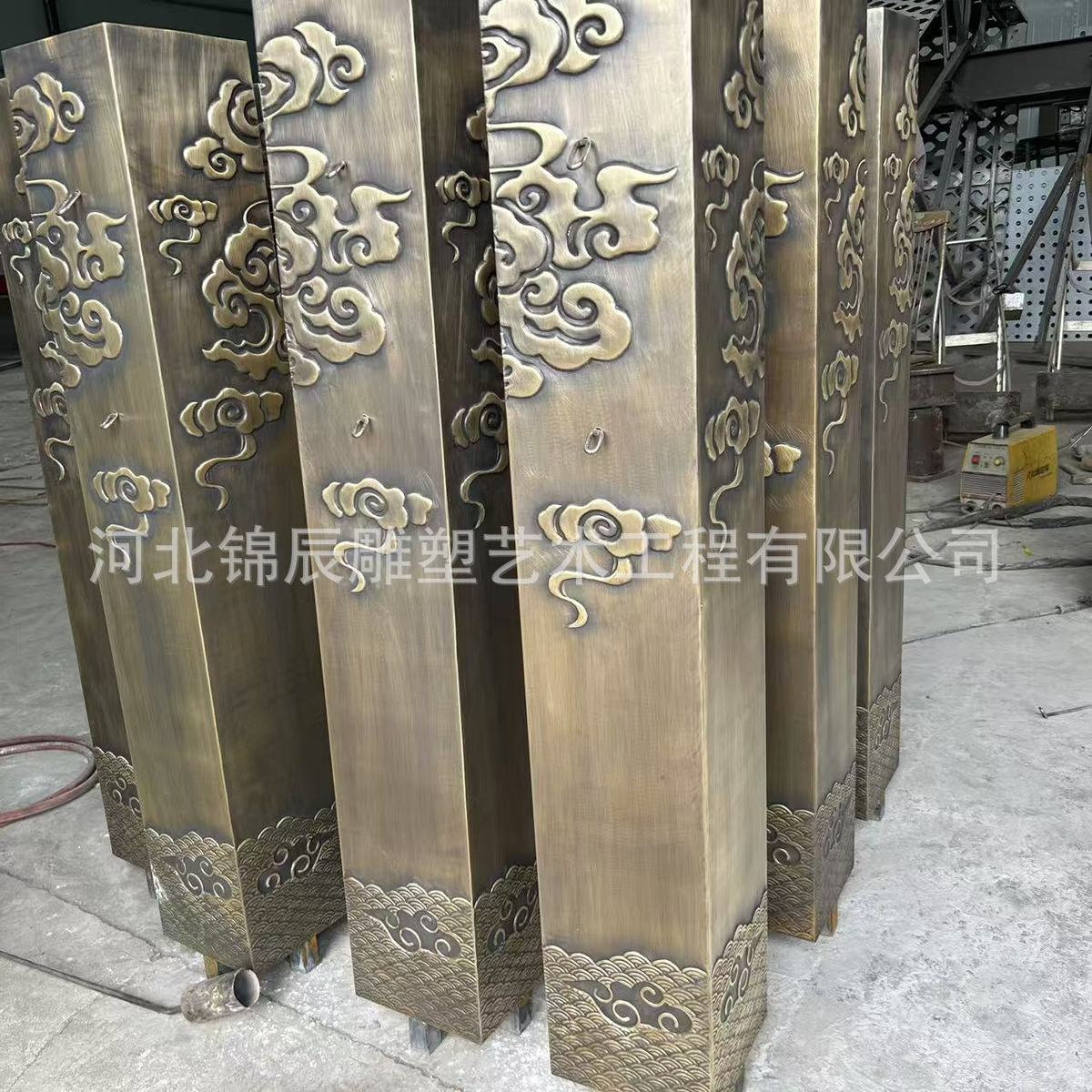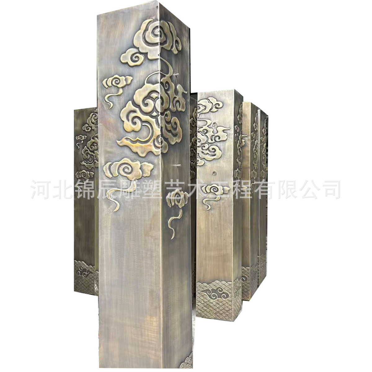 大型铜包祥云紫铜錾刻柱子錾刻铜壁画厂家直销