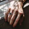 千叶黑石戒指男复古百搭高级感霸气开口可调节潮流指环男士单身戒