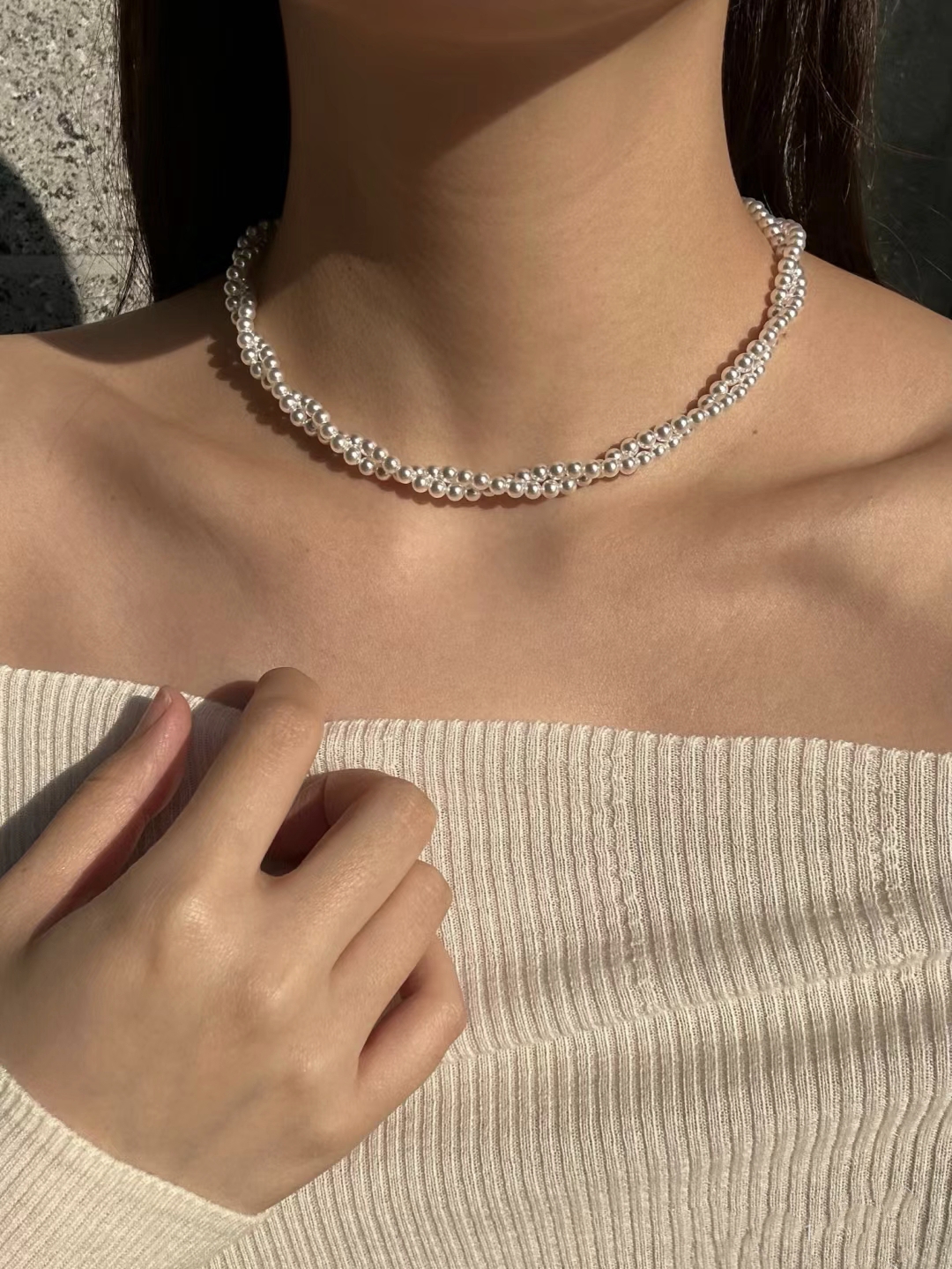 ISLA孤岛双层叠戴施家珍珠项链真多麻色baby珍珠锁骨链鹅颈链纯银