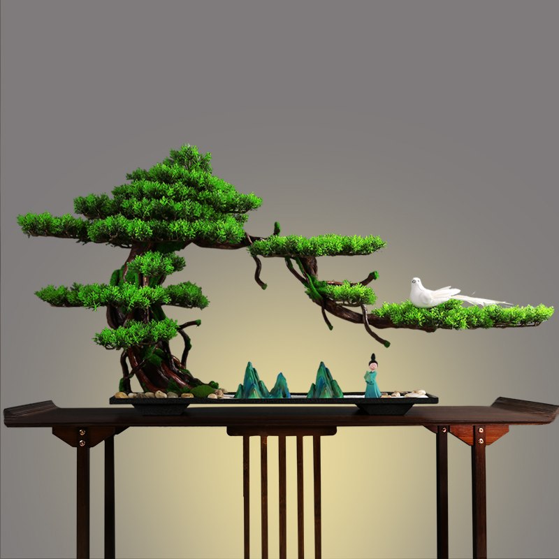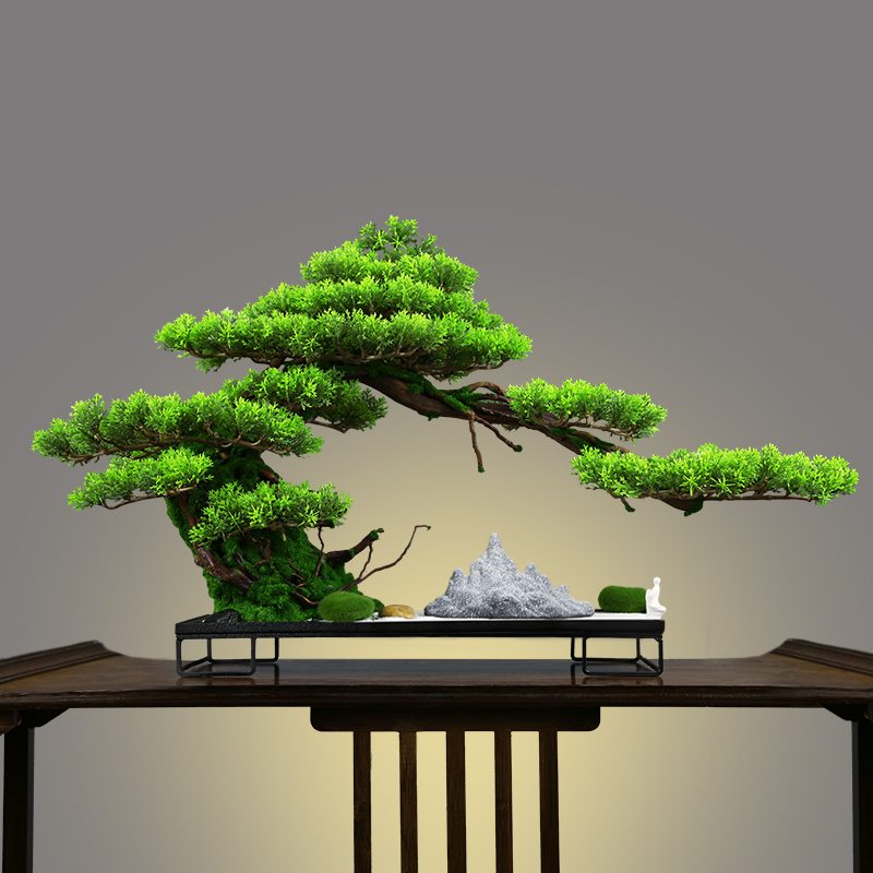 新中式仿真迎客松树客厅玄关入户盆景酒店软装饰办公室微景观摆件