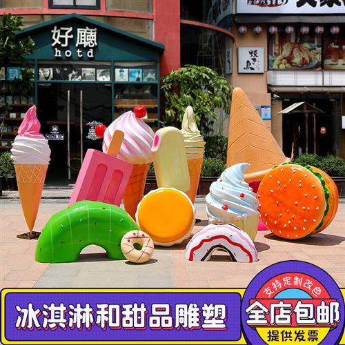 户外仿真甜甜圈冰淇淋汉堡包玻璃钢雕塑商业街奶茶甜品店装饰摆件