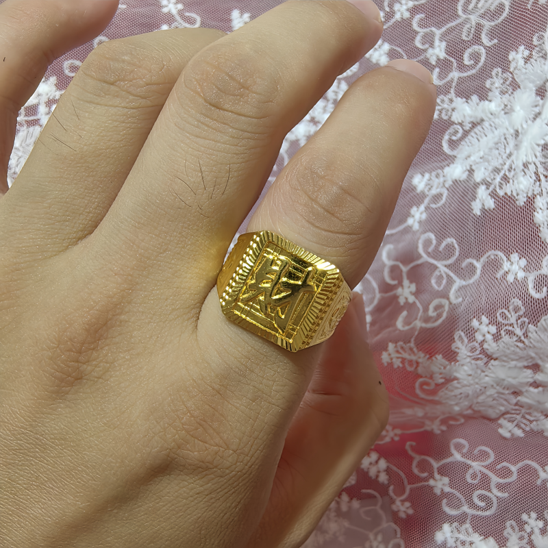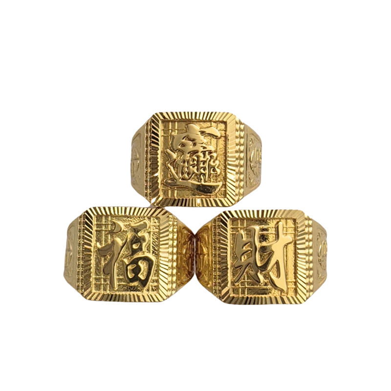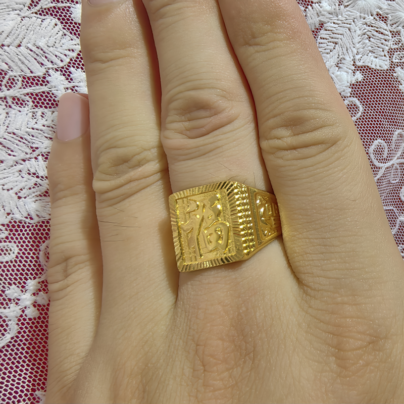 古法传承招财进宝戒指黄金包银男女同款福字财字活口指环送生日礼
