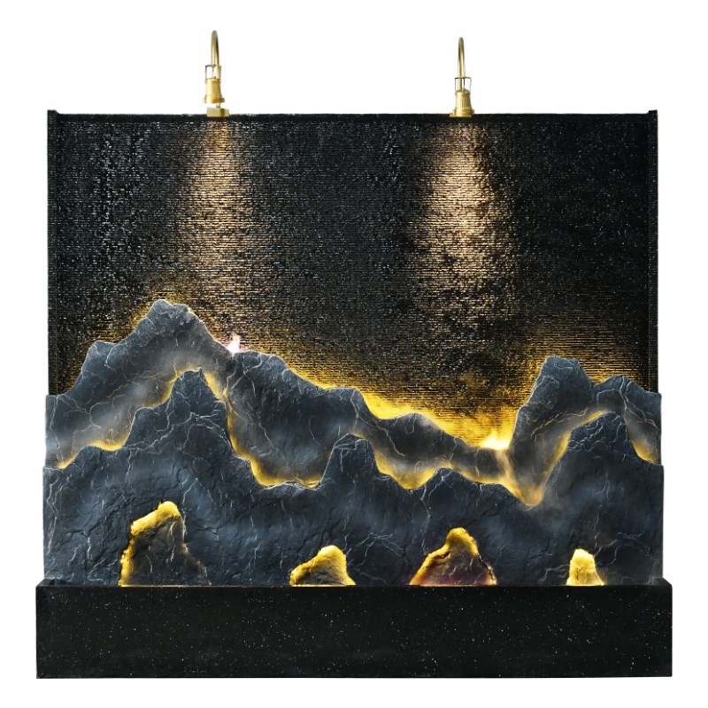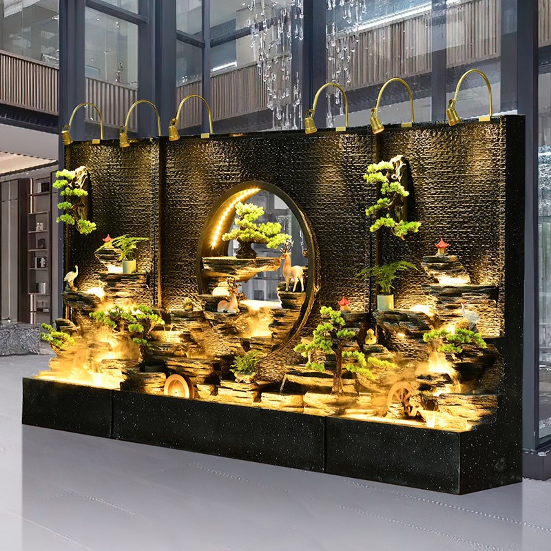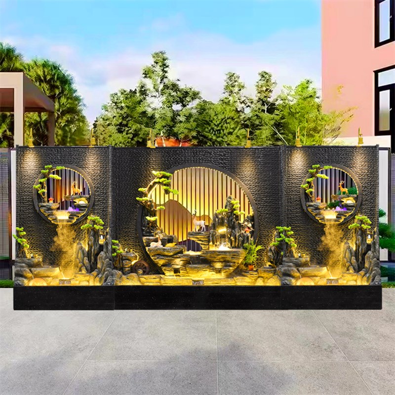 大型水幕墙流水屏风酒店会所玄关隔断办公室假山庭院花园装饰造景