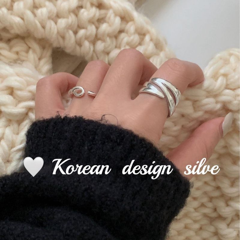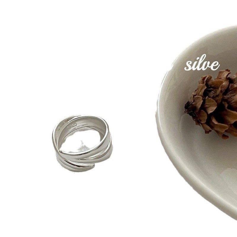 韩国设计亮银饰品 S925纯银重工线条缠绕戒指ins叠戴可调节指环女