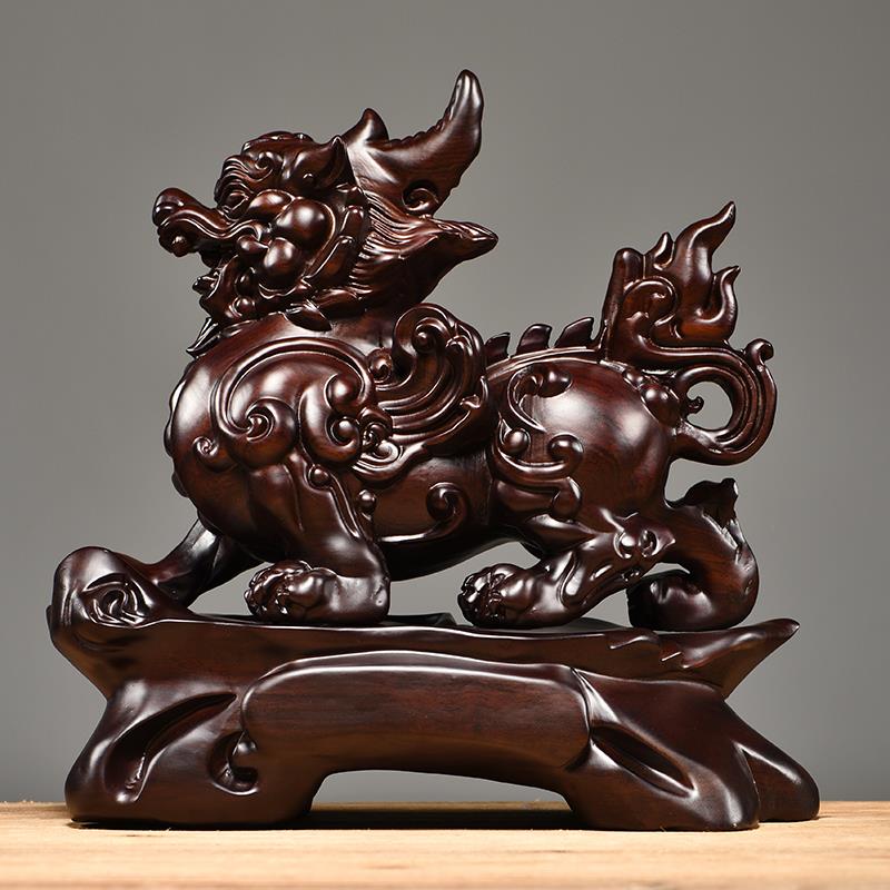 黑檀木雕貔貅摆件皮丘办公室桌貔貅装饰开张店铺开业实木工艺礼品