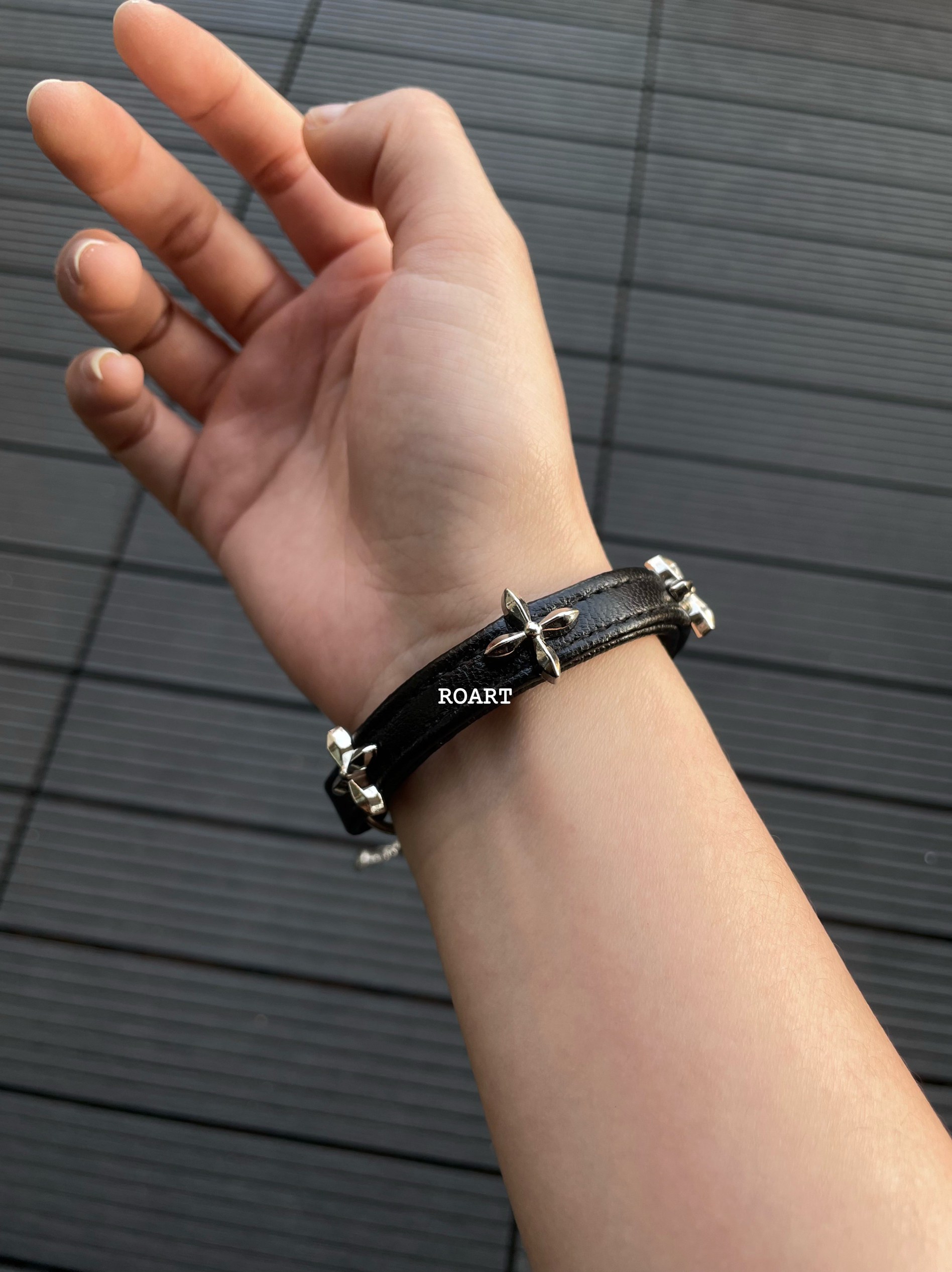 甜酷风黑色皮革手链女高颜值学生党手环手饰轻奢小众精致高级感