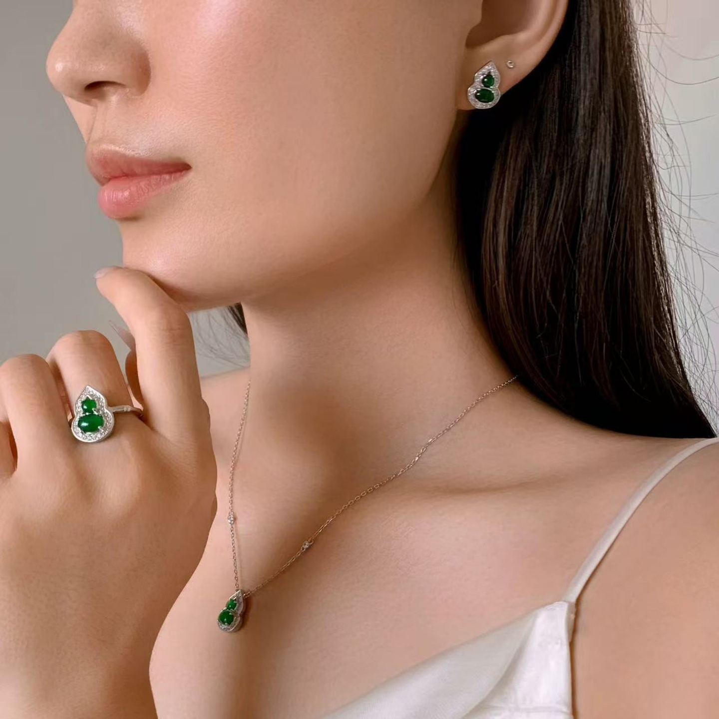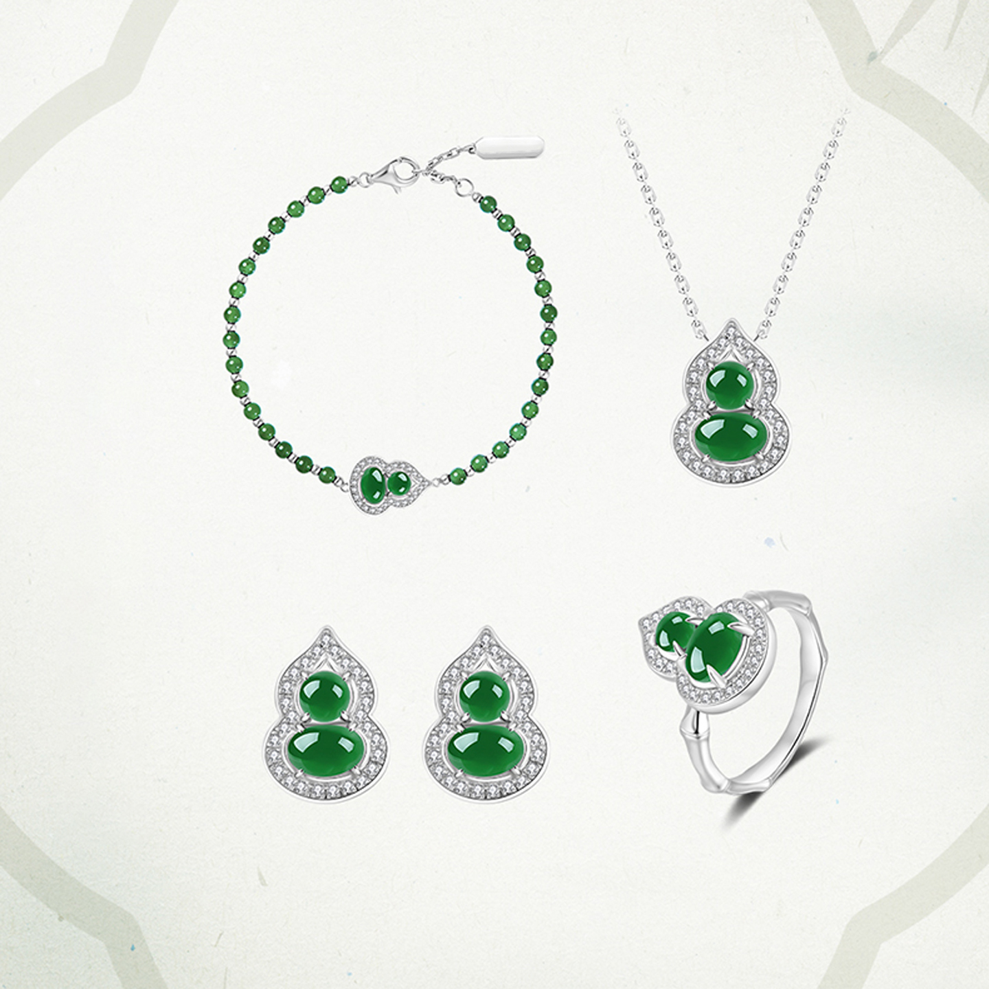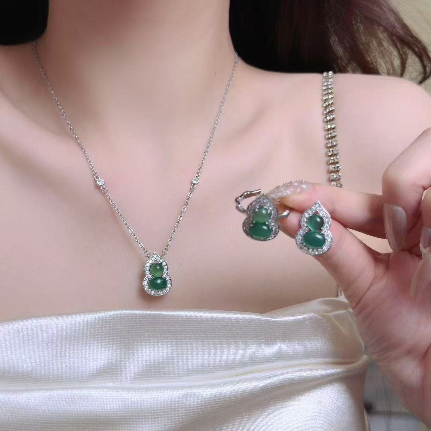 小葫芦福禄项链女小众设计高级感轻奢新中式百搭手链耳钉戒指套装