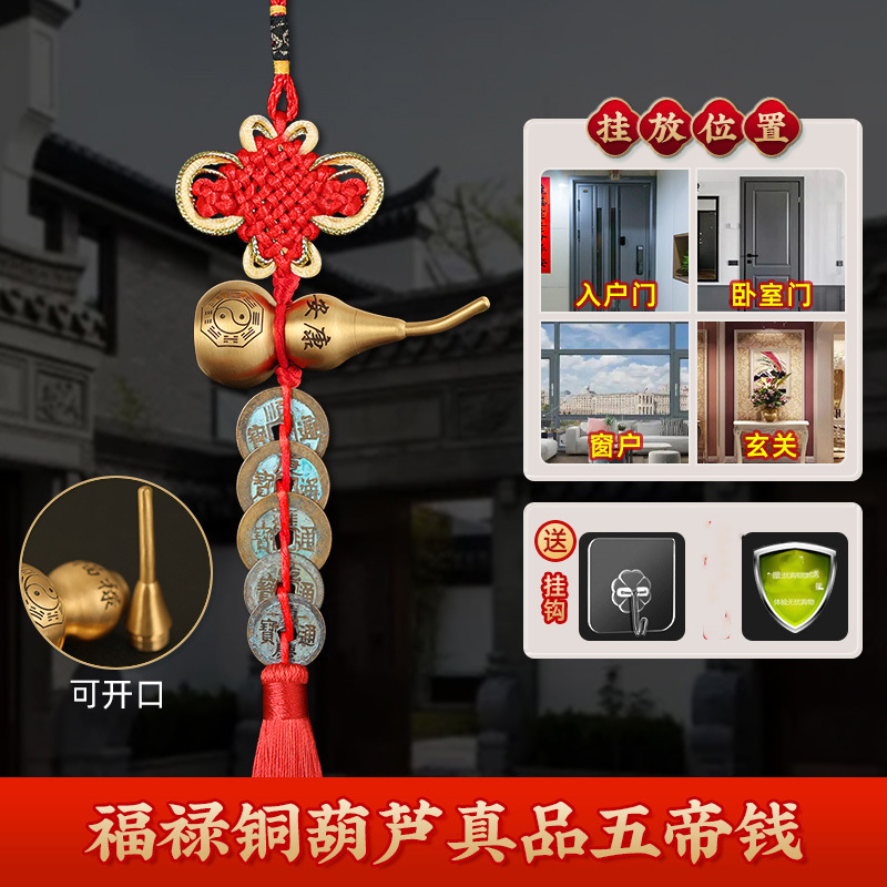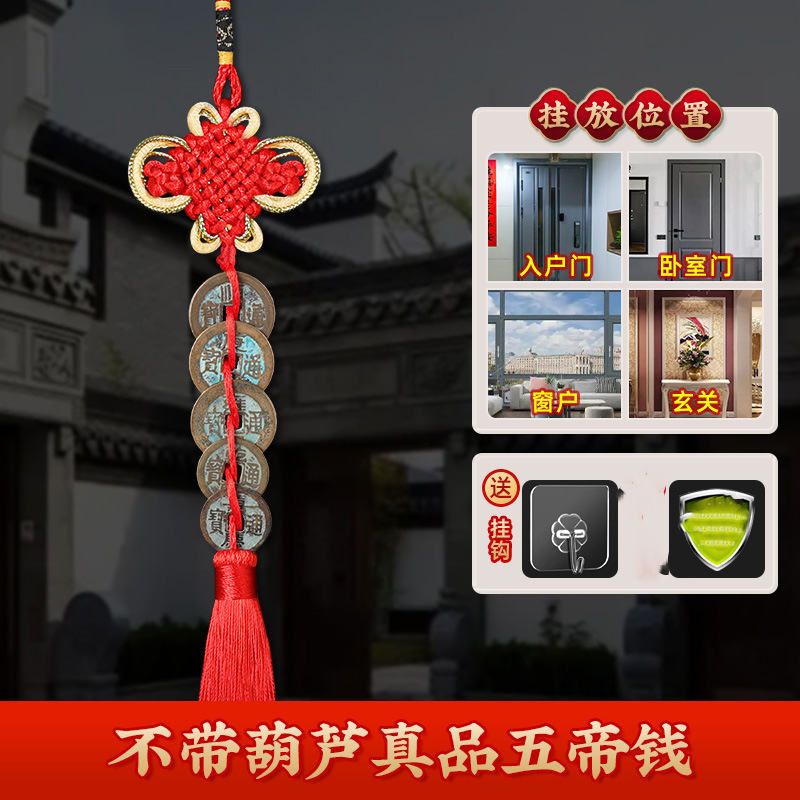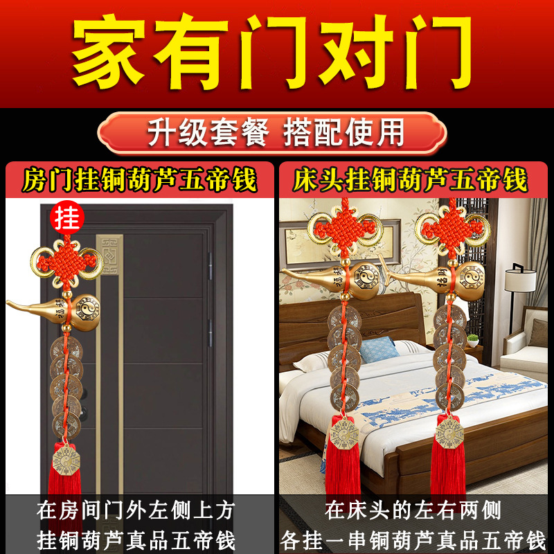 五帝钱门对门古币开真品过光入户门厕所办公卧室铜钱挂件朱砂葫芦