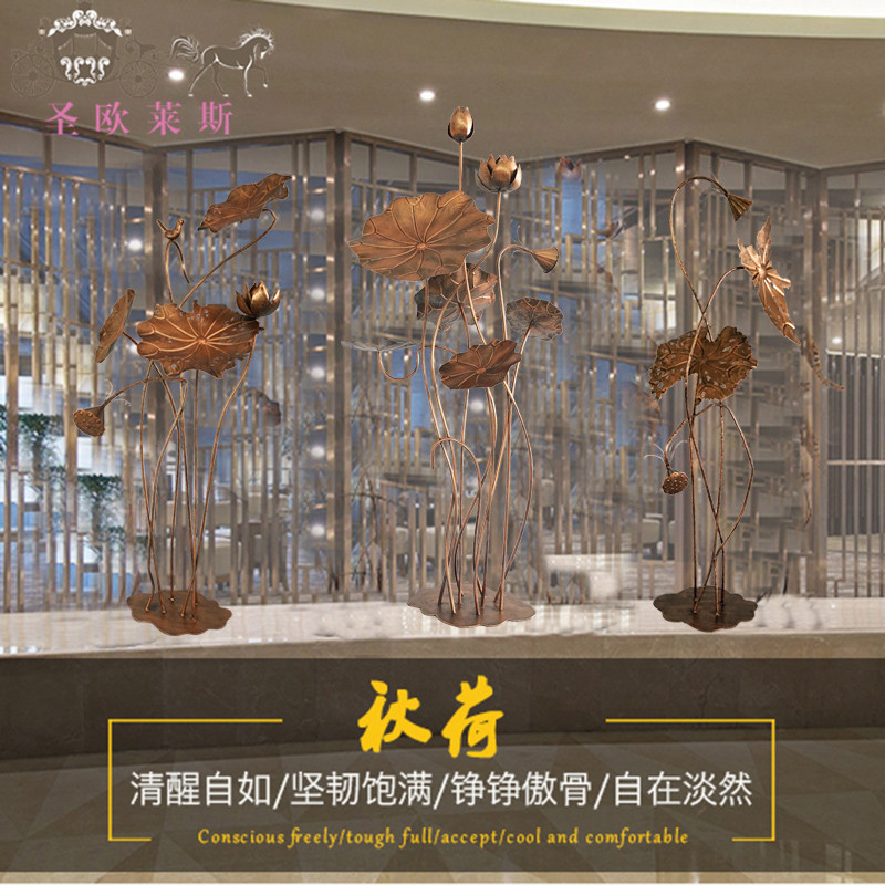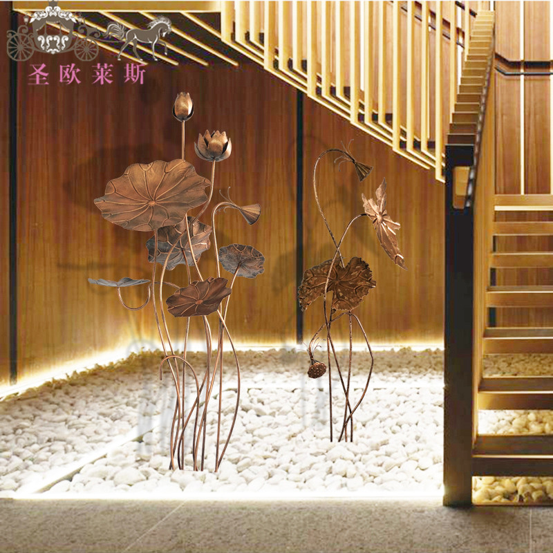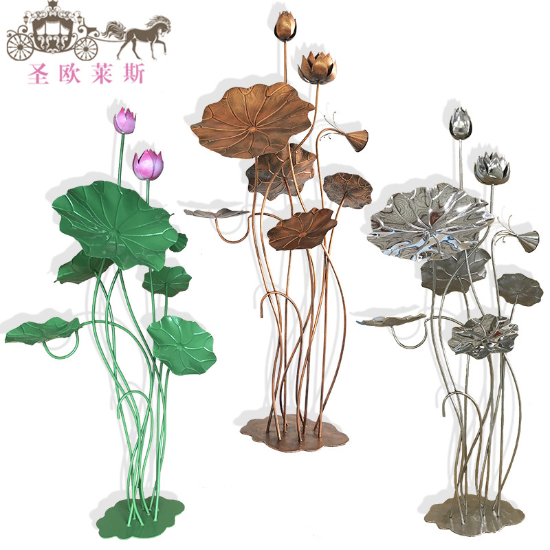 不锈钢荷花金属雕塑摆设庭院水景落地摆件酒店水池铁艺荷叶装饰品