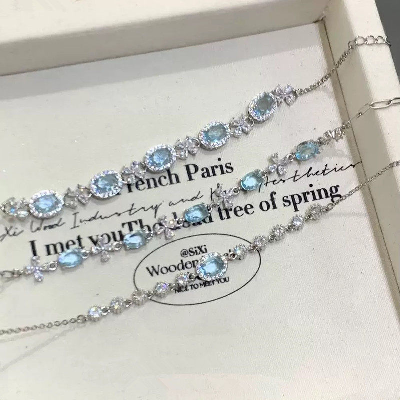 蓝色水晶!清澈盐湖手链轻奢小众精致高级感仙气夏天配饰女生手饰
