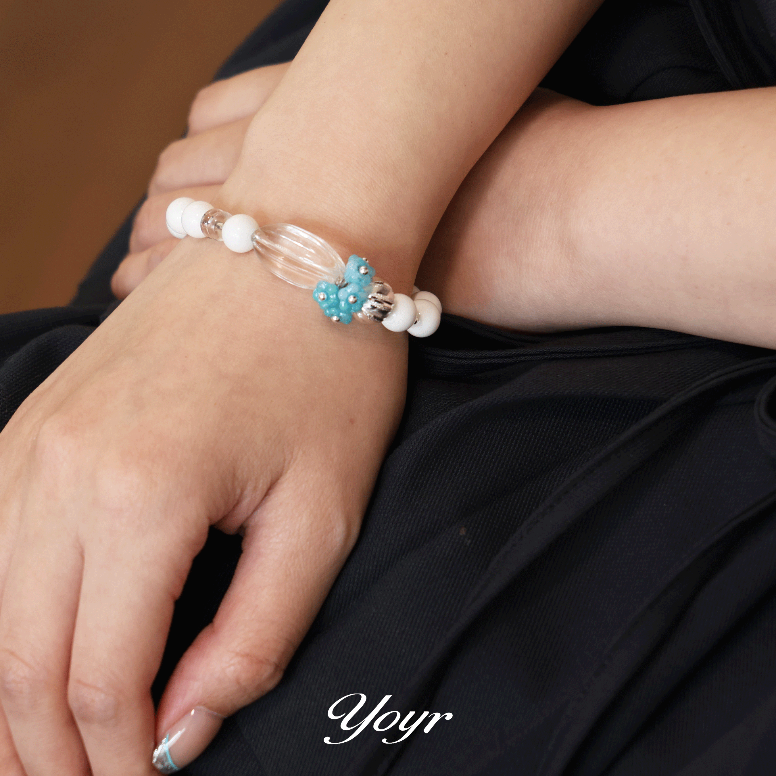 yoyr手链 海盐碎冰手链简约款高级感蓝色小花精致款弹力手链