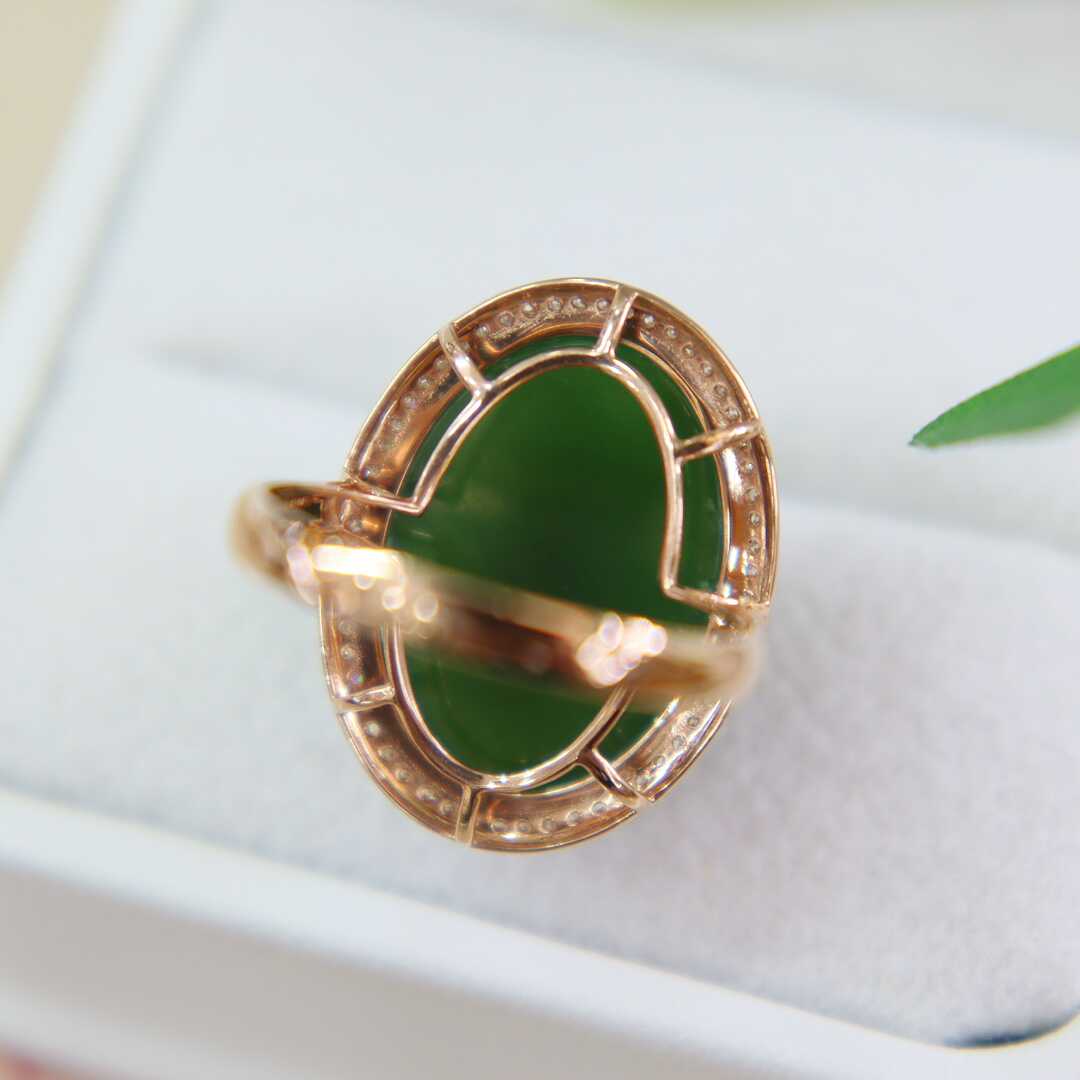 中秋礼物天然和田玉戒指女a菠菜绿碧玉蛋面镶18k金指环老料玉满钻