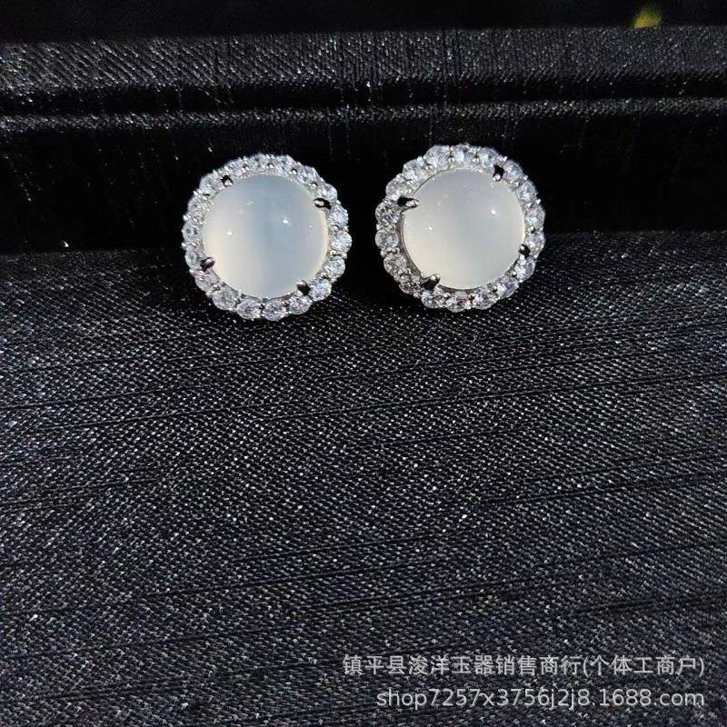 本命年925银镶嵌冰种绿玉髓耳钉玛瑙玉石豪华翡翠色耳坠礼物