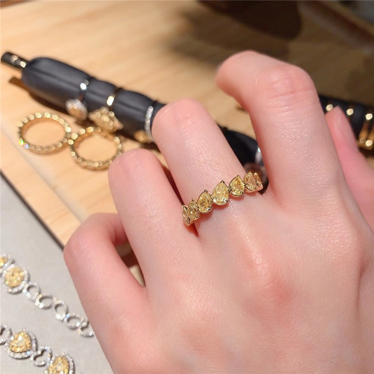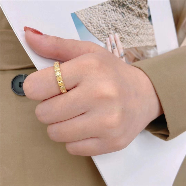 新款女士18K白金玫瑰金GIA克拉黄钻钻石满钻镶嵌公主方异形排戒指