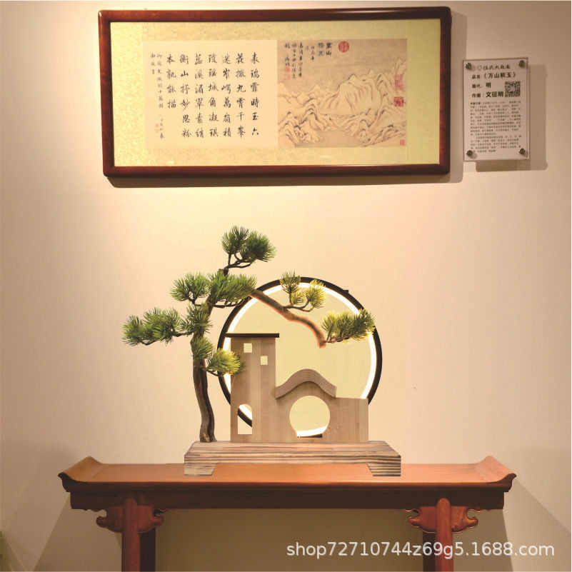 新中式迎客松灯圈底座摆件客厅玄关创意家居灯饰办公室会所装饰