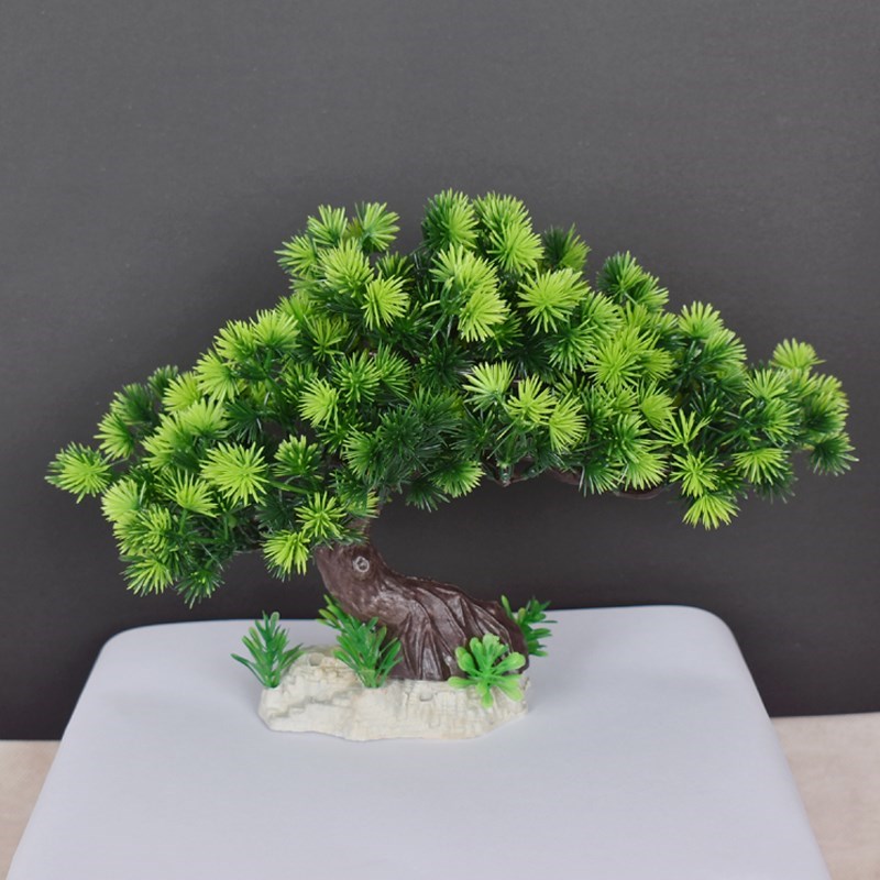 仿真迎客松摆件小松树绿植水草微型假山鱼缸造景组合酒店装饰品