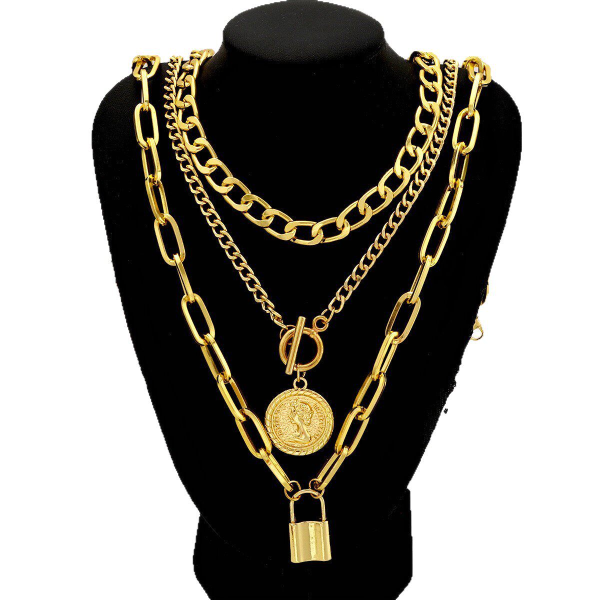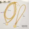 Women Necklace欧美女项链套装轻奢气质浮雕圆牌吊坠OT扣三层项链