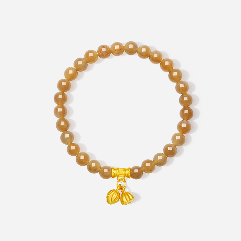 周六福5D硬金金镶玉和田糖玉手串女款莲蓬花两世欢首饰节日礼物