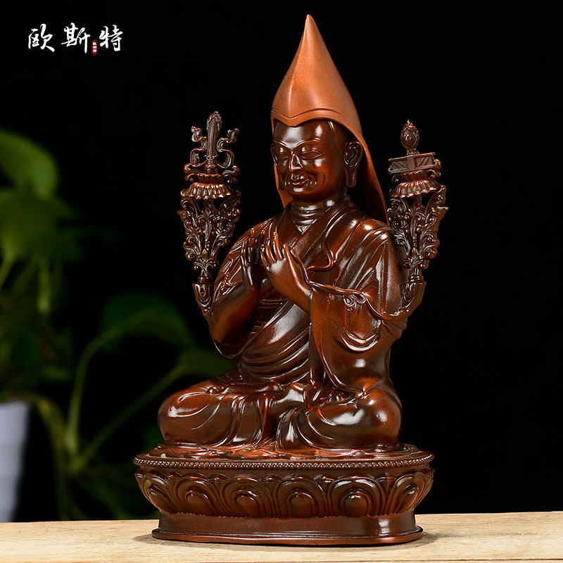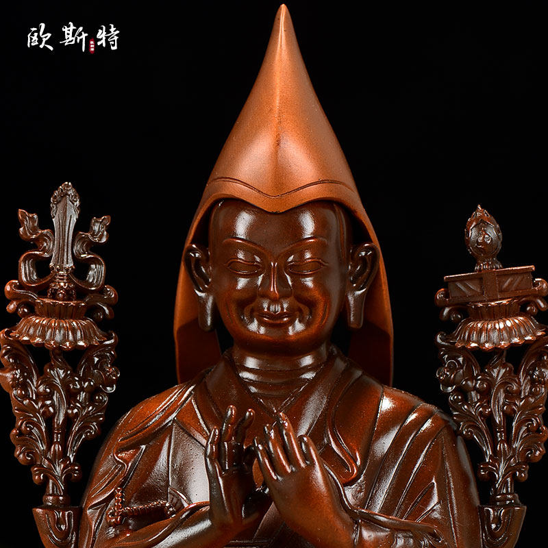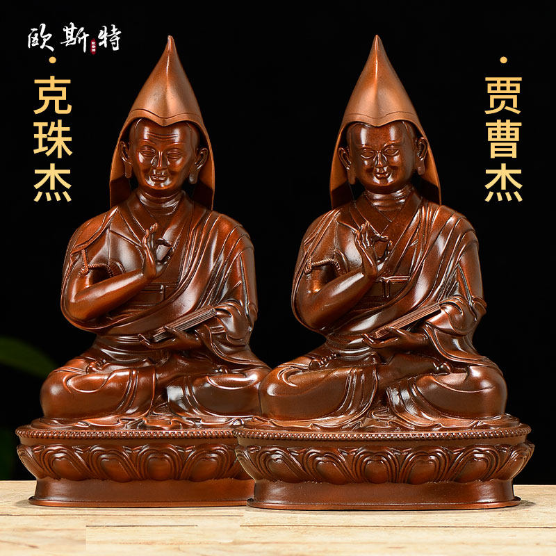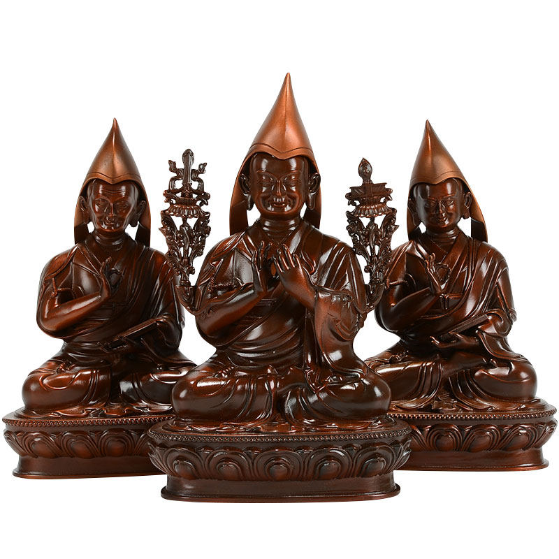 欧斯特宗喀巴大师中式摆件古铜雕花玄关用品居家装饰师徒三人铜像