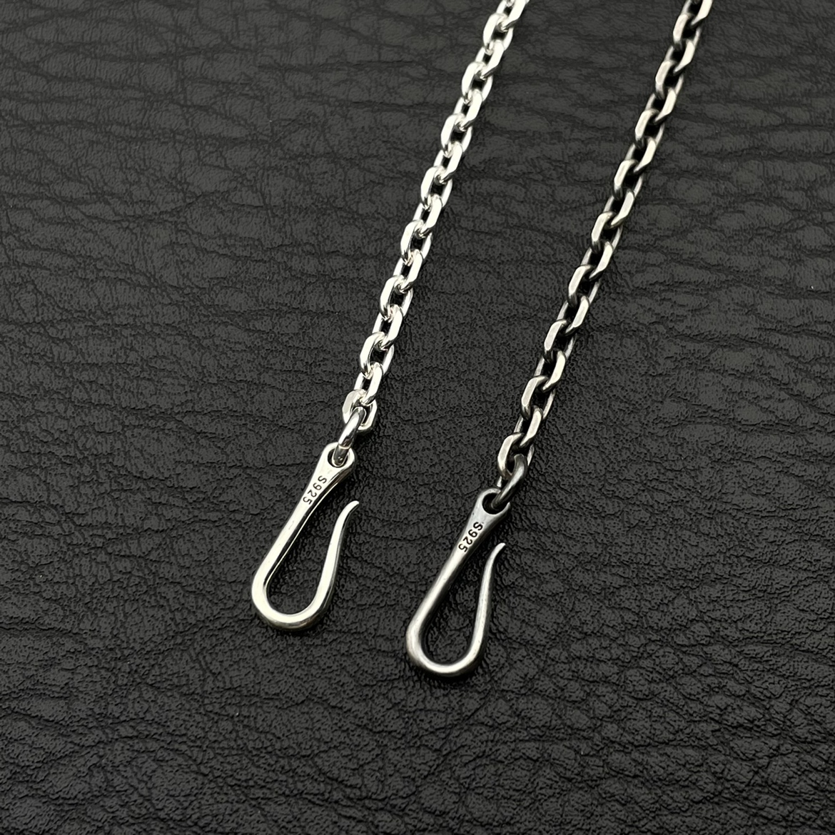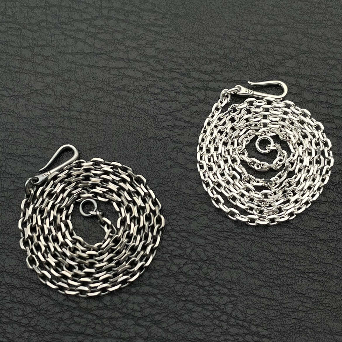 思涵银工坊个性百搭3.5mm925纯银细角链亮银/做旧男女同款项链
