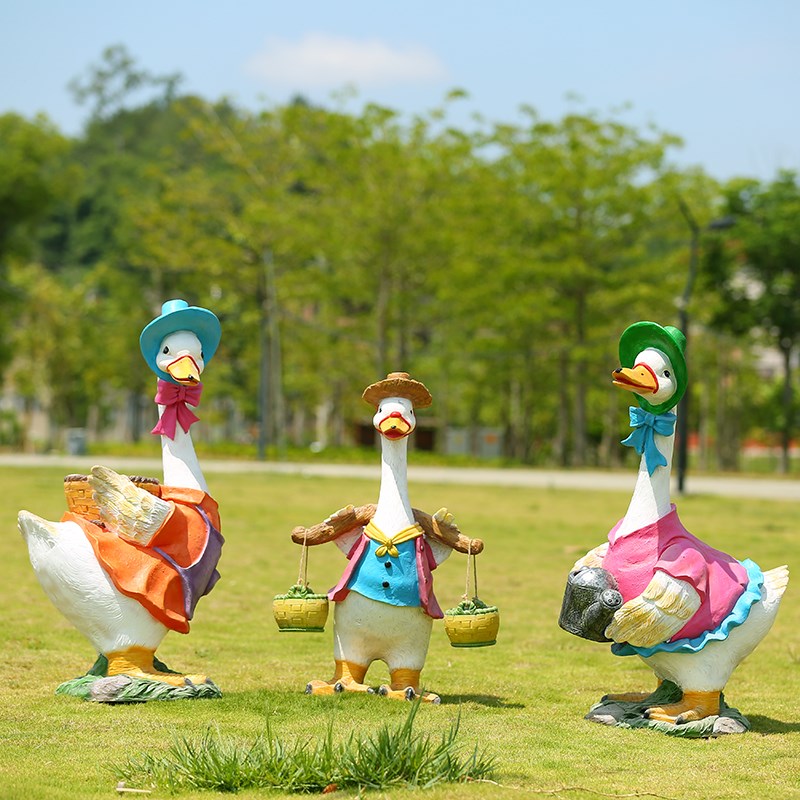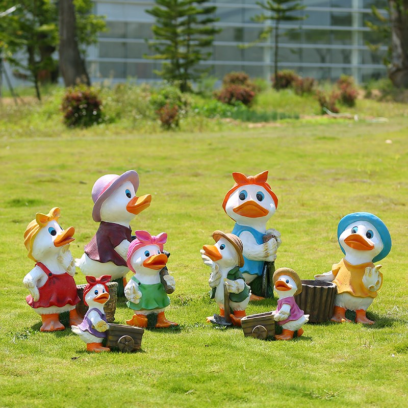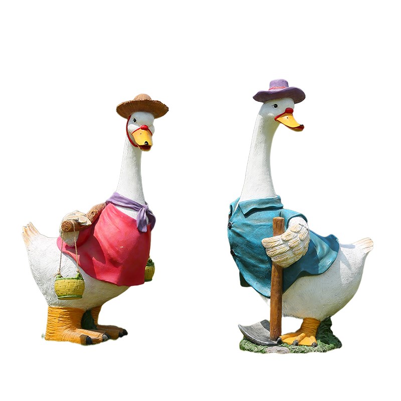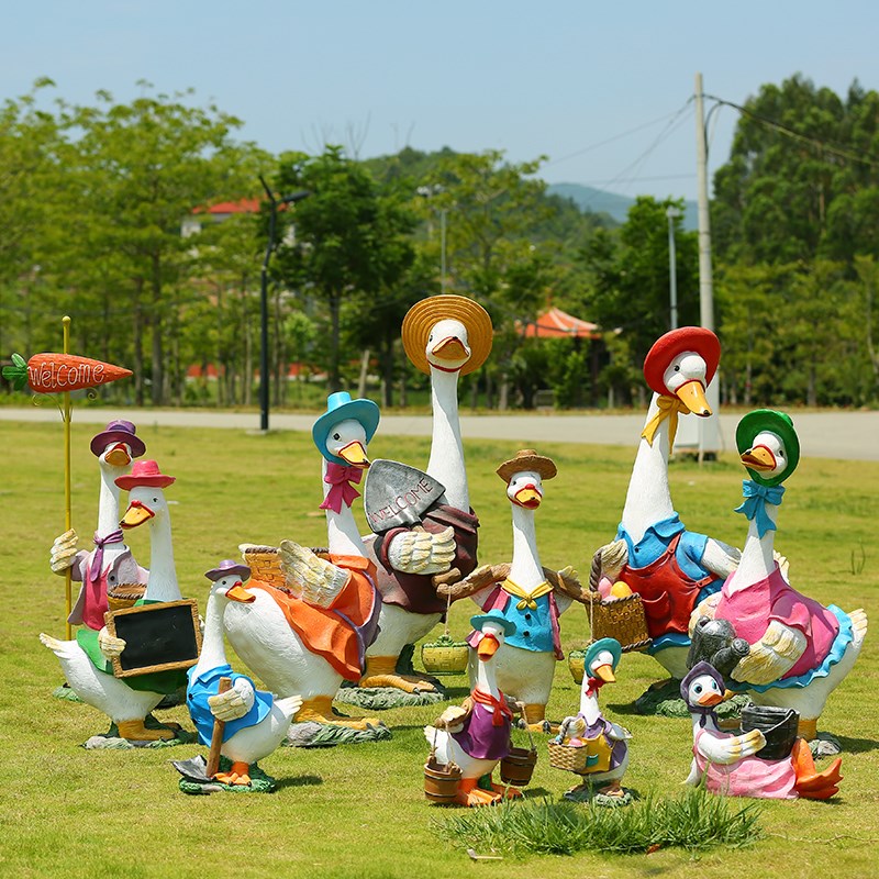 农场花园卡通劳动鸭子雕塑幼儿园草坪餐厅饭店创意装饰玻璃钢摆件