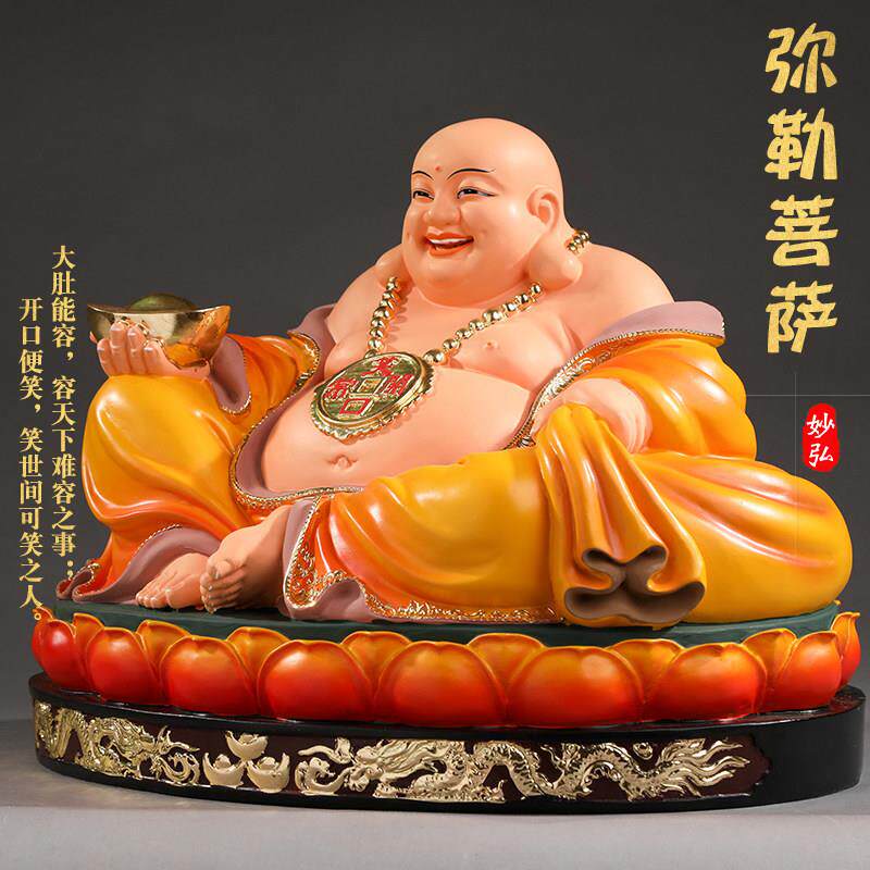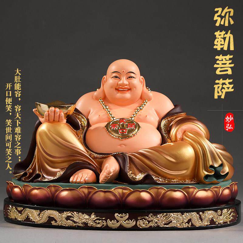 镇弥宅用大肚弥体勒佛像 红衣弥艺体弥勒勒神像居家家宽笑佛 招财