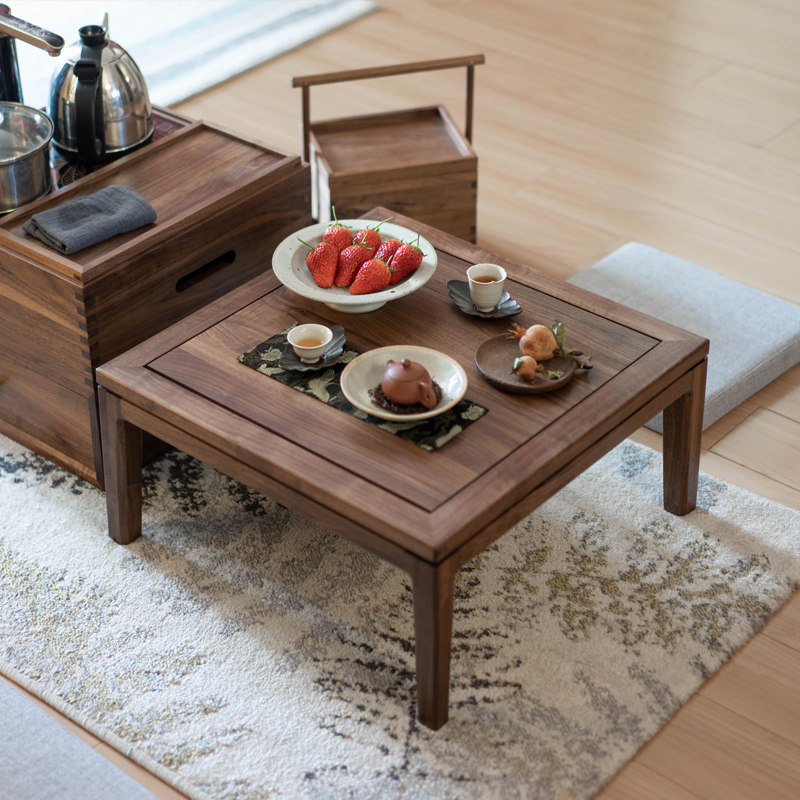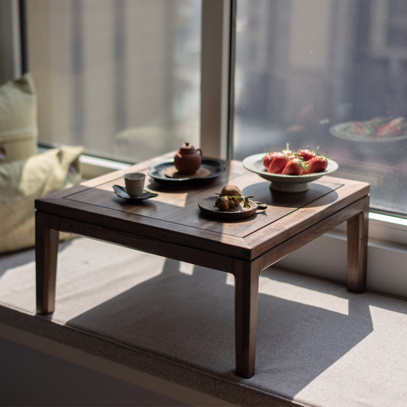 新中式小炕桌黑胡桃木榻榻米茶几茶室简约飘窗桌禅意日式阳台矮桌