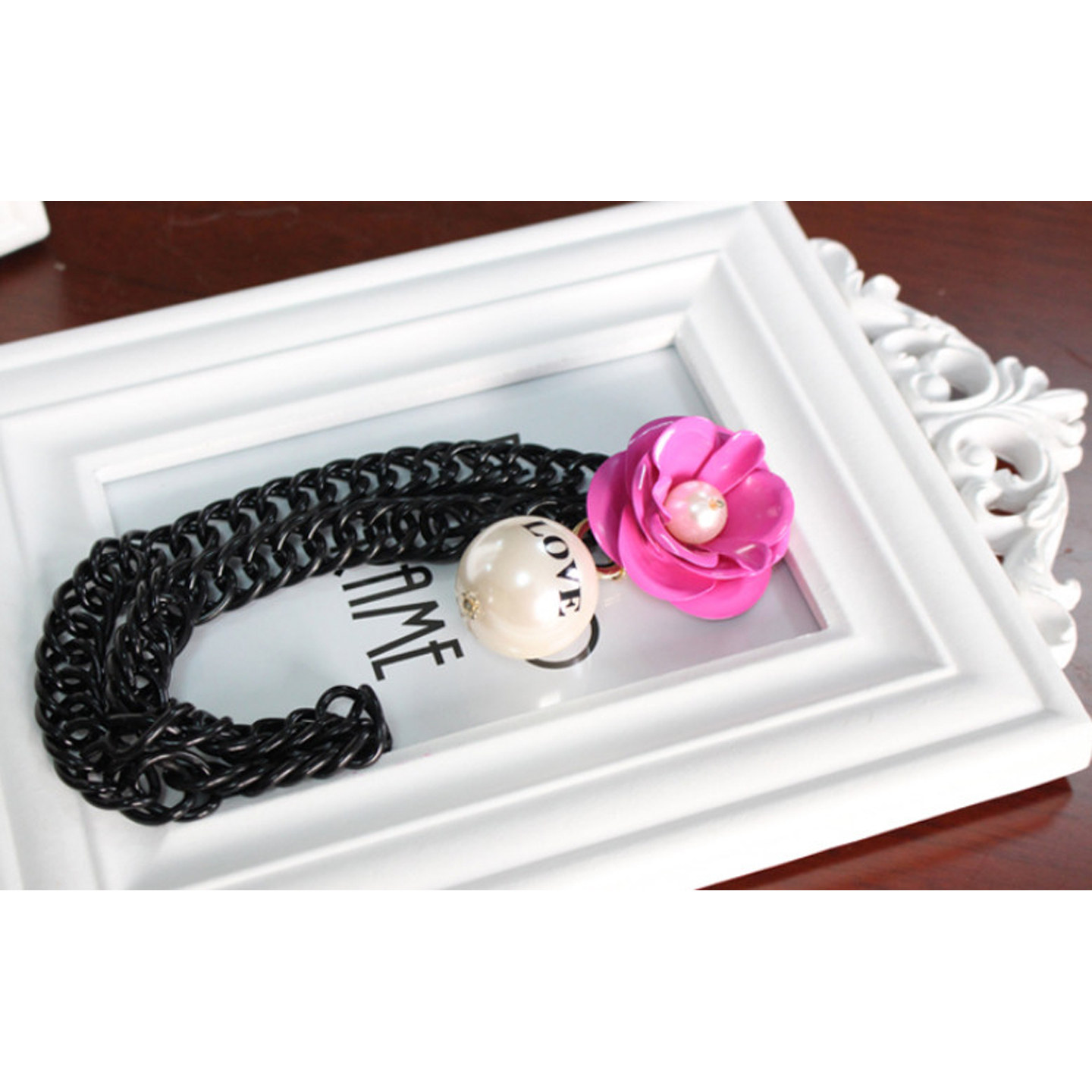 【特价清仓】新款黑色金属链条项链女绿花仿珍珠吊坠可调节毛衣链